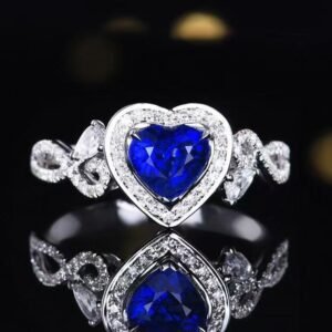 Luncy Jewelry 18k While Gold 1.08ct Heart Cut Unheated Royal Blue Sapphire with Diamonds Jewellery Ring for Engagement