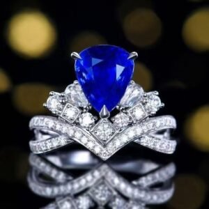 Luncy Jewelry 18k While Gold 2.84ct Pear Cut Unheated Royal Blue Sapphire with Diamonds Jewellery Ring for Wedding and Parties