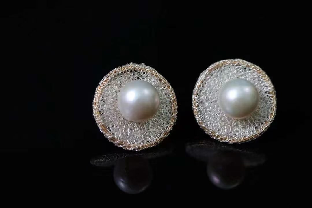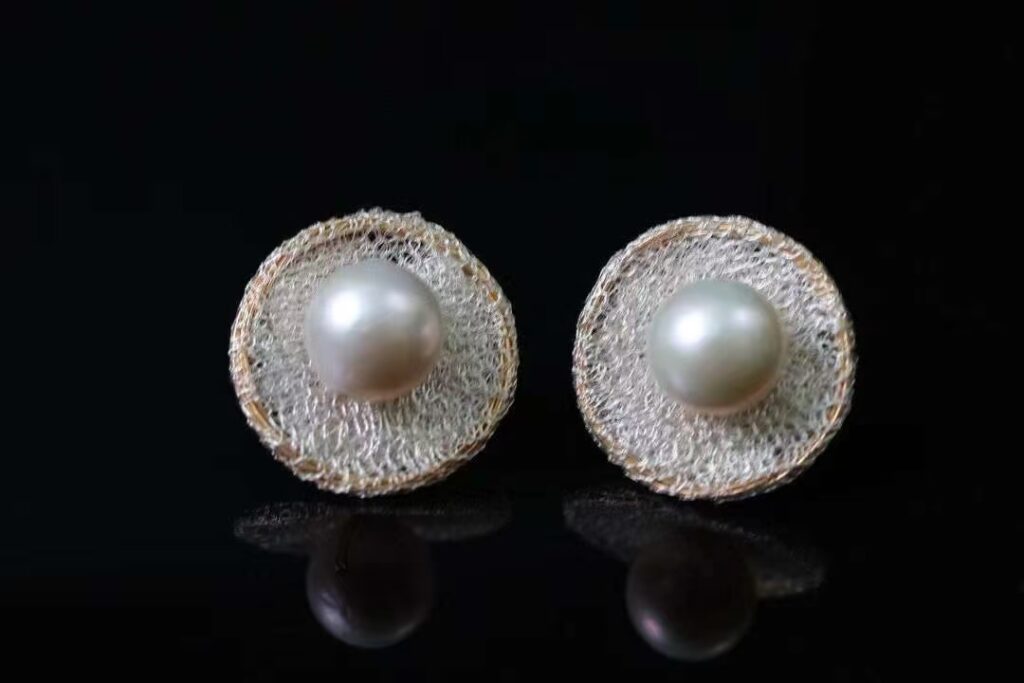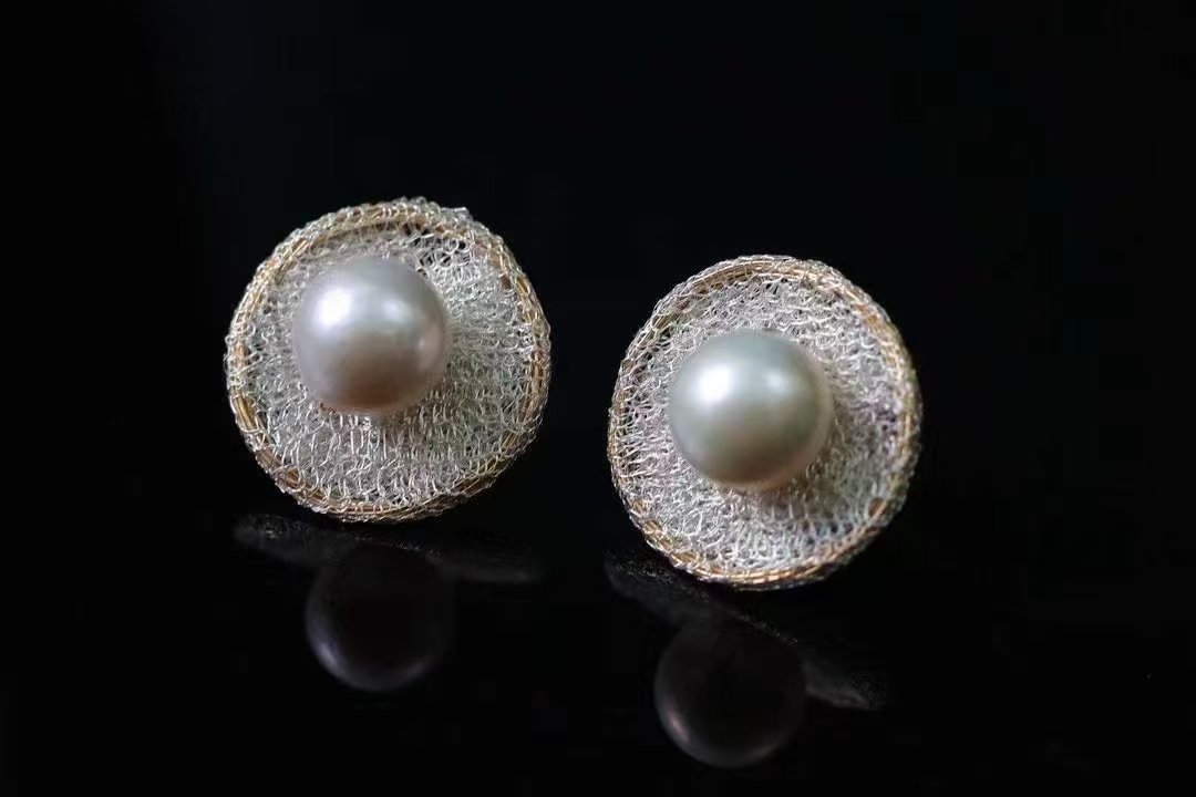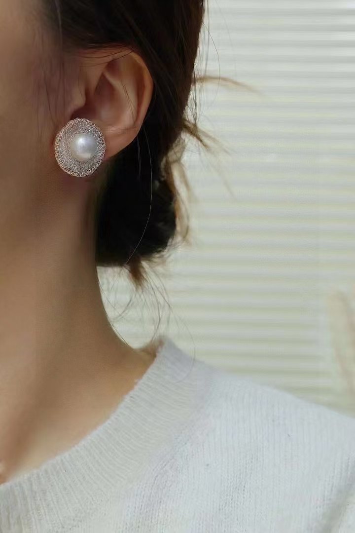 Discover elegance with these original design earrings featuring high-quality, natural freshwater pearls (9-10mm) that shimmer with strong luster. The pearls are beautifully complemented by imported 14k gold and intricately crafted metal lace, creating a timeless piece with a 2.5cm outer diameter. Perfect for those who appreciate fine craftsmanship and luxurious style, these earrings elevate any look, making them an ideal choice for both daily wear and special occasions. Experience the blend of sophistication and high appearance in these stunning pearl earrings.