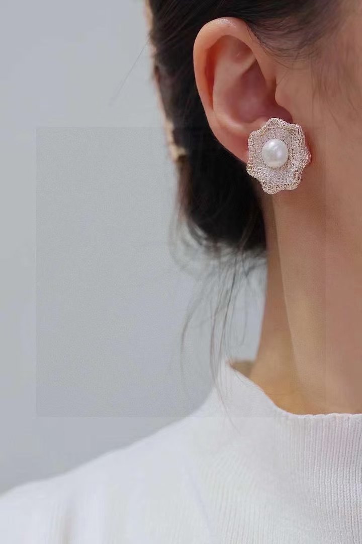 Elevate your elegance with these handcrafted earrings, featuring genuine freshwater pearls and delicate imported lace. The 14K gold, sourced from the USA, enhances the luxurious feel, while the intricate design showcases skilled craftsmanship. Perfect for those who appreciate timeless beauty with a modern touch, these earrings offer both sophistication and quality, making them an essential addition to any fine jewelry collection.
