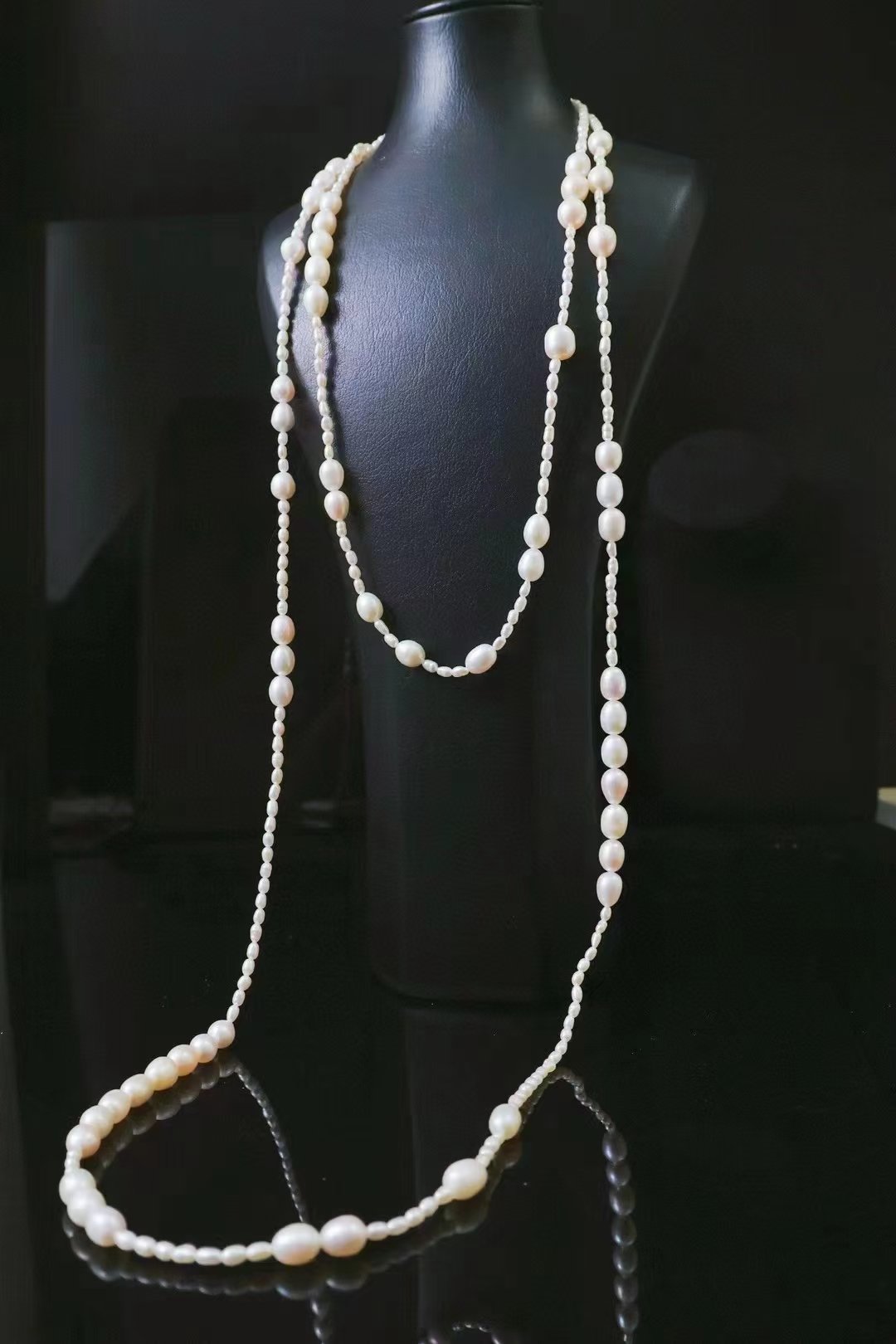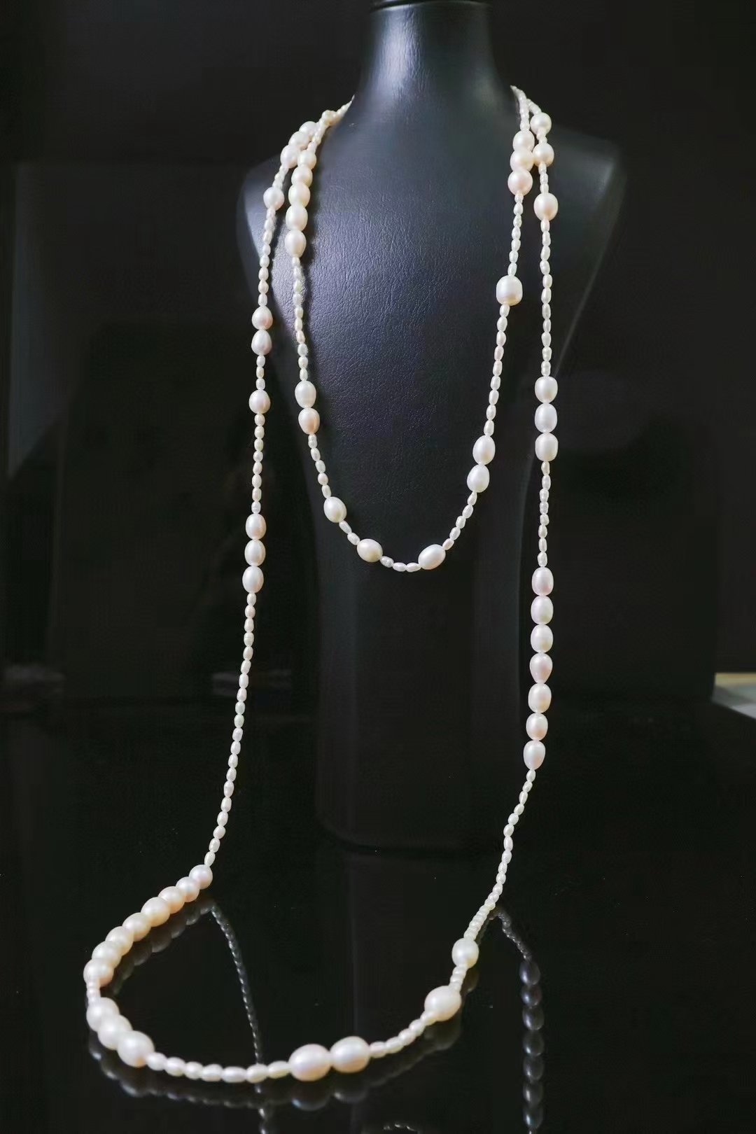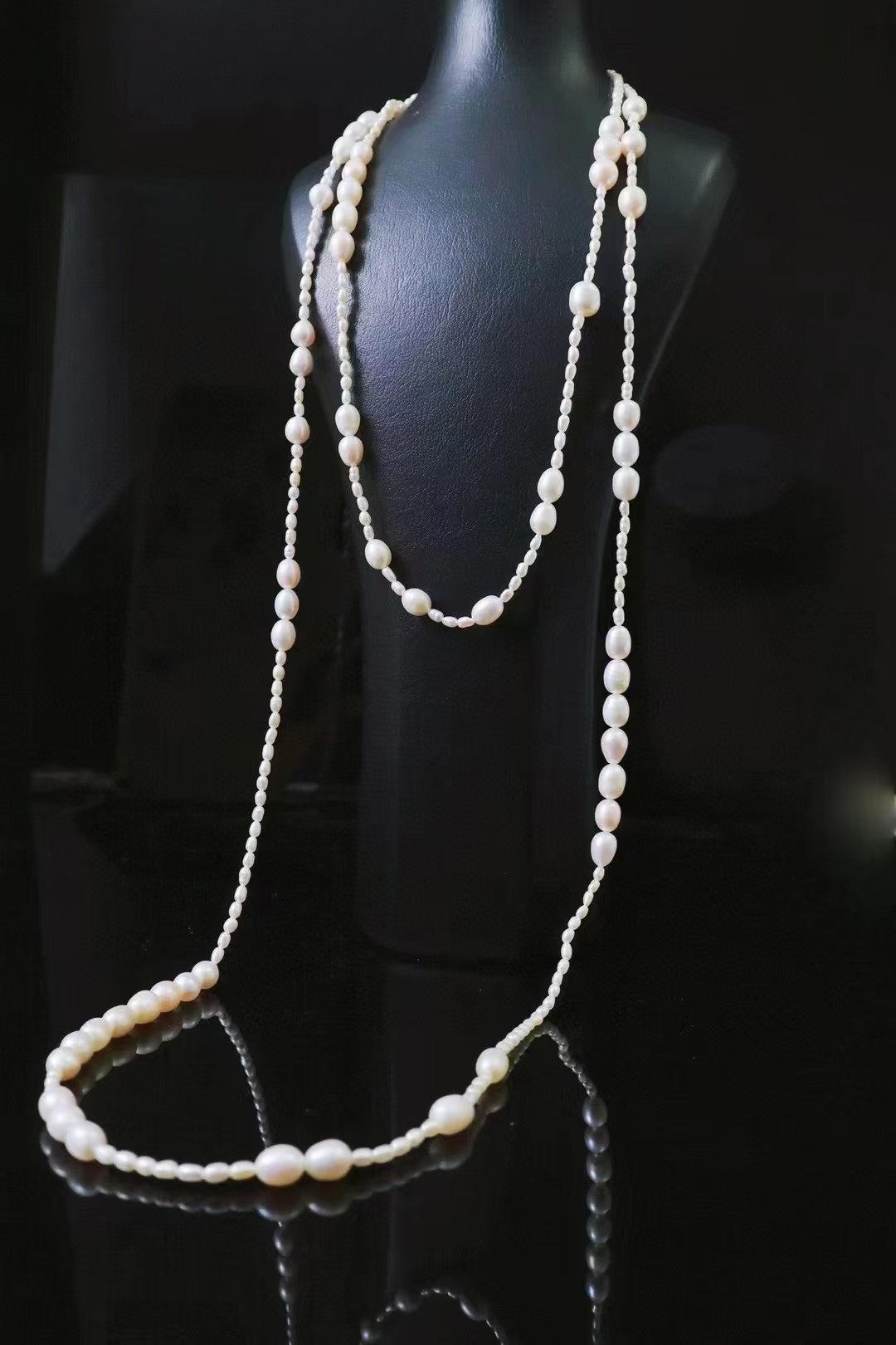 Introducing our exquisite new sweater chain, elegantly crafted from 14k gold and adorned with natural freshwater pearls imported from the United States. Each piece showcases a slight variation in quality, reflecting its unique, artisanal charm. Meticulously handmade, this sweater chain adds a touch of sophistication to any outfit, making it a perfect accessory for both casual and formal occasions. Elevate your style with this timeless piece that combines luxury and individuality.