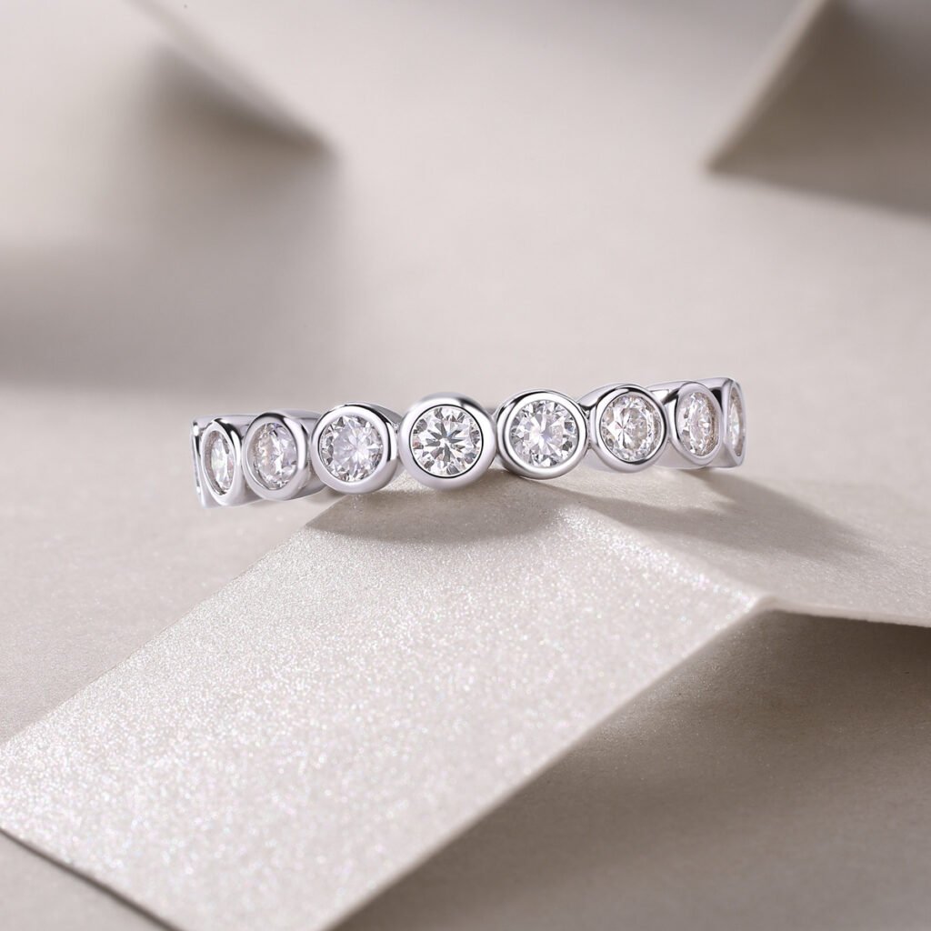Introducing our exquisite 925 Sterling Silver Moissanite Ring Wedding Band, a perfect symbol of love and commitment. Crafted with precision, this stunning band features ethically sourced moissanite stones that rival the brilliance of diamonds. The lustrous sterling silver setting enhances its elegance, making it a timeless choice for any occasion. Whether for an engagement or anniversary, this ring promises to dazzle and delight, embodying both quality and beauty. Celebrate your special moments with a piece that lasts a lifetime.