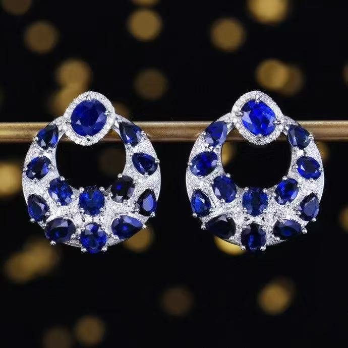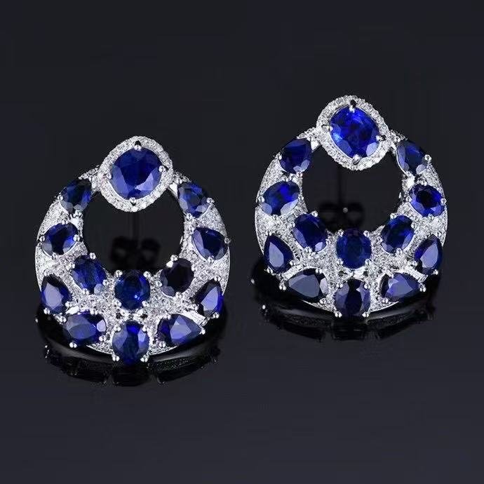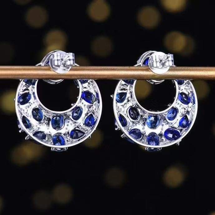 Custom Luncy Jewelry 18k White Gold 7.12ct Natural Sapphire Stud Earrings with Diamonds Jewellery for Parties to Women