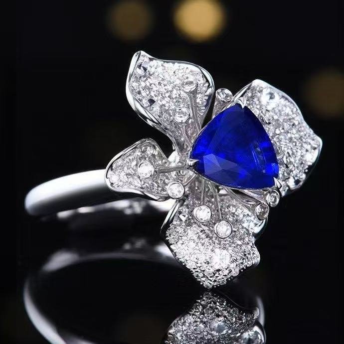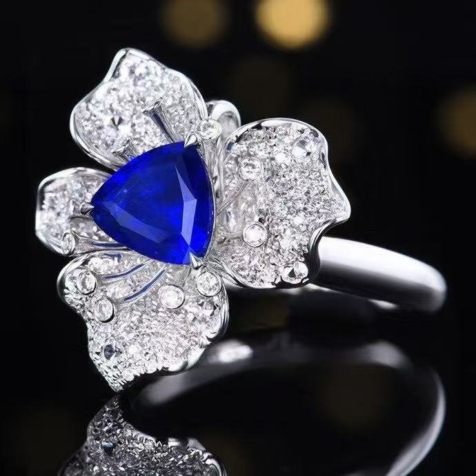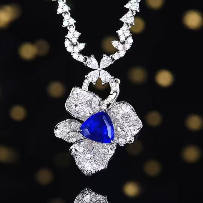 Luncy Jewelry 18k While Gold 1.74ct Unheated Royal Blue Sapphire with Diamonds Jewellery Both of Ring and Pendant Can Be Used