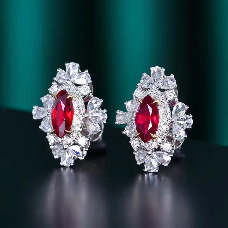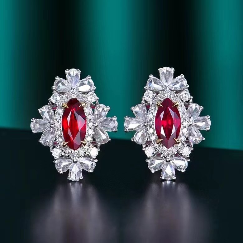 | Jewelry Name | 18K Gold Natural Gemstone Pigeon Blood Ruby Horse Eye Stud Earrings |