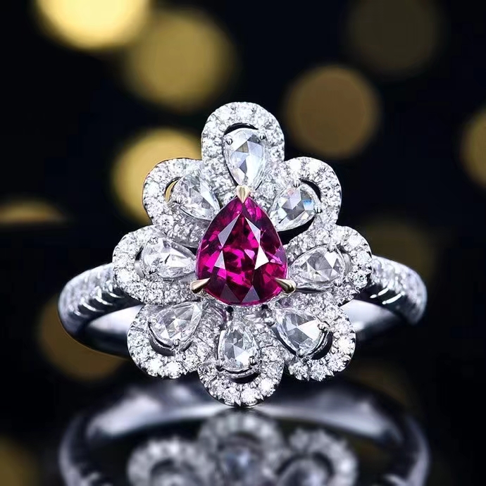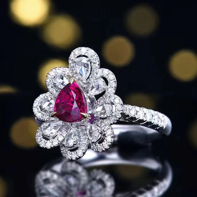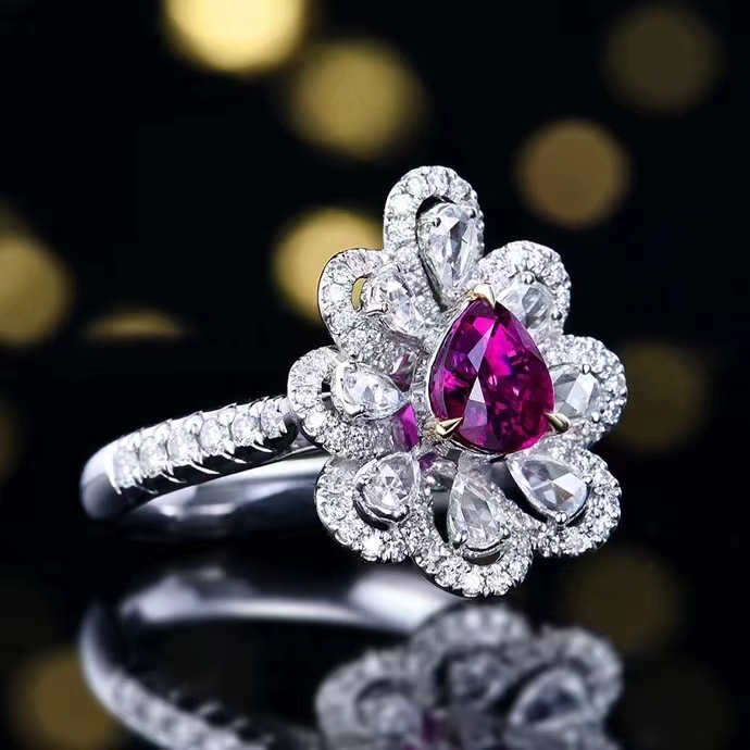 SGARIT Fine Jewelry Custom Solid 18k White Gold 1.05 Carats Pear Cut Jewellery Luxury Natural Gemstone Mozambique Unheated Pigeon Red Ruby Ring/Pendant