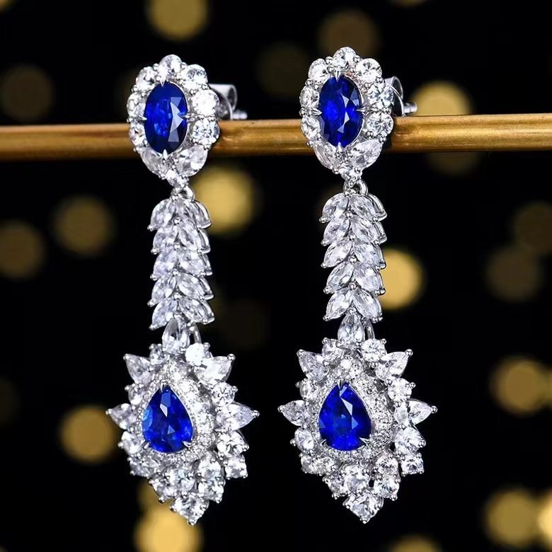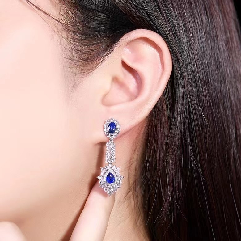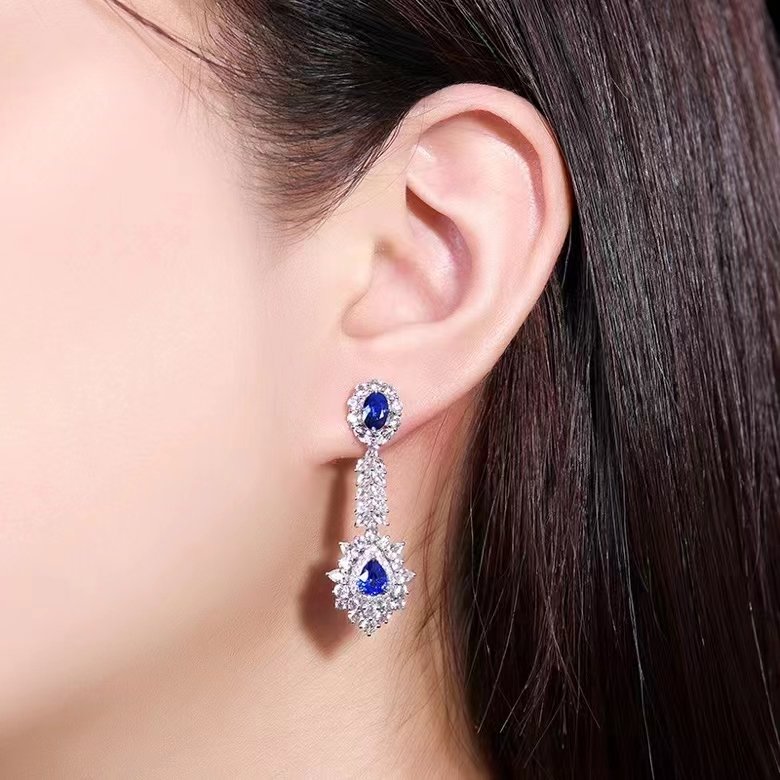 | Jewelry Name | 18K Gold Natural Gemstone Blue Sapphire Eardrop Earrings |