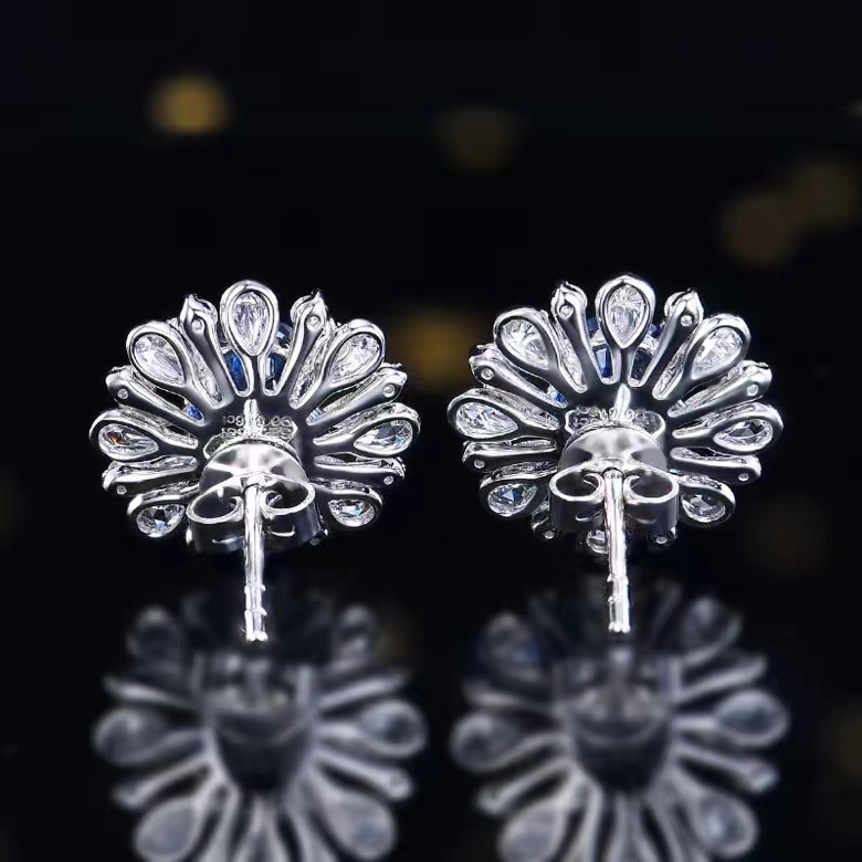 SGARIT Fine Jewelry Custom Solid 18k White Gold 2.25 Carats Oval Cut Jewellery Luxury Natural Gemstone Sri Lanka Blue Sapphire Stud Earrings