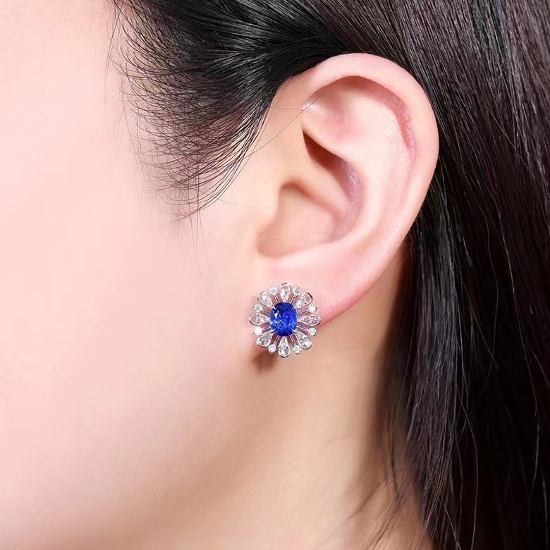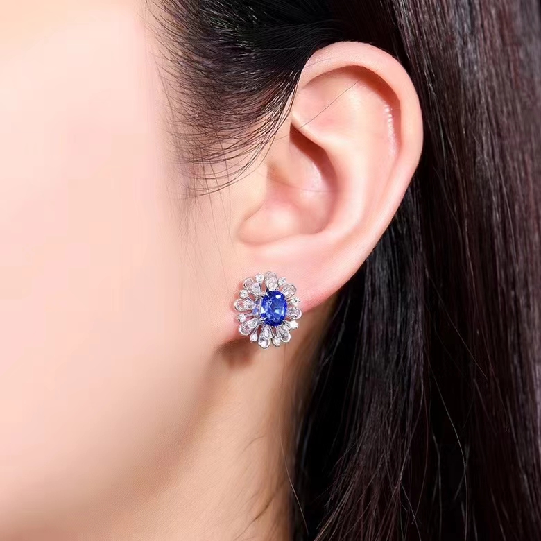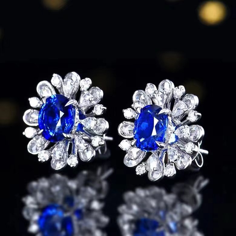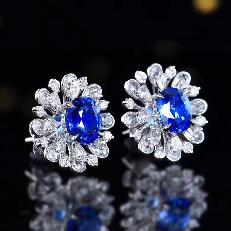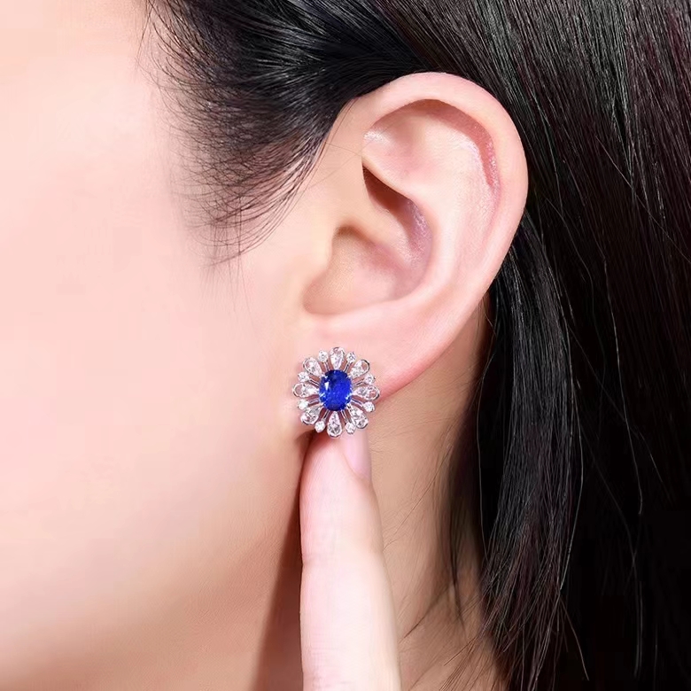 SGARIT Fine Jewelry Custom Solid 18k White Gold 2.25 Carats Oval Cut Jewellery Luxury Natural Gemstone Sri Lanka Blue Sapphire Stud Earrings