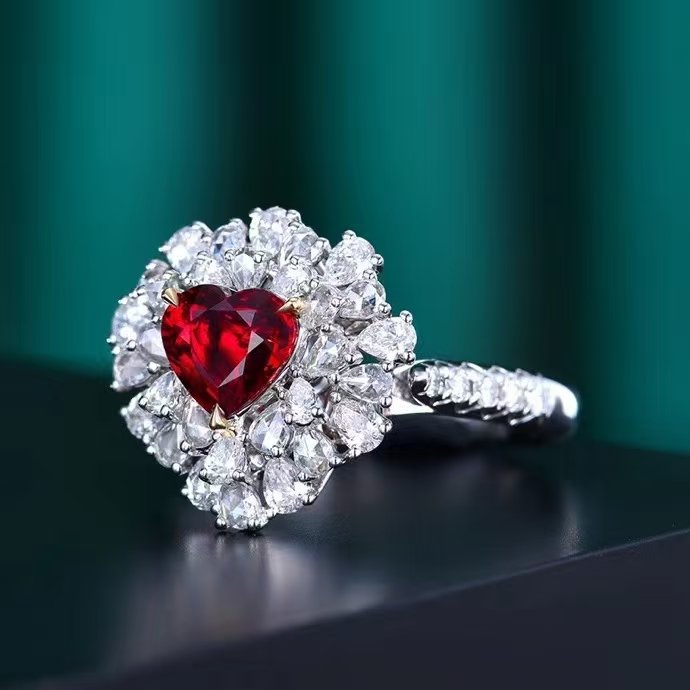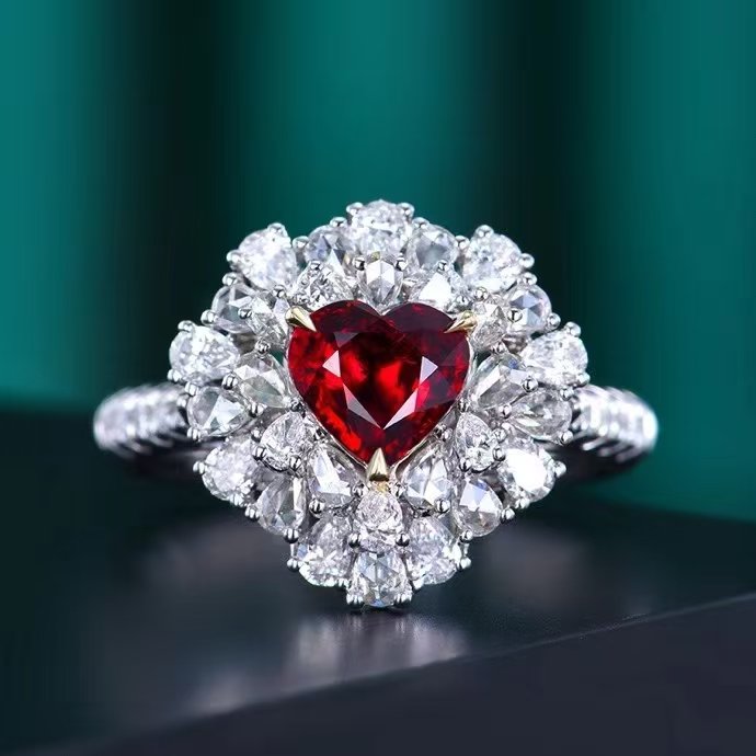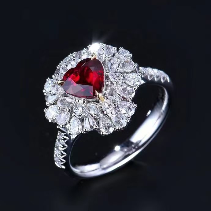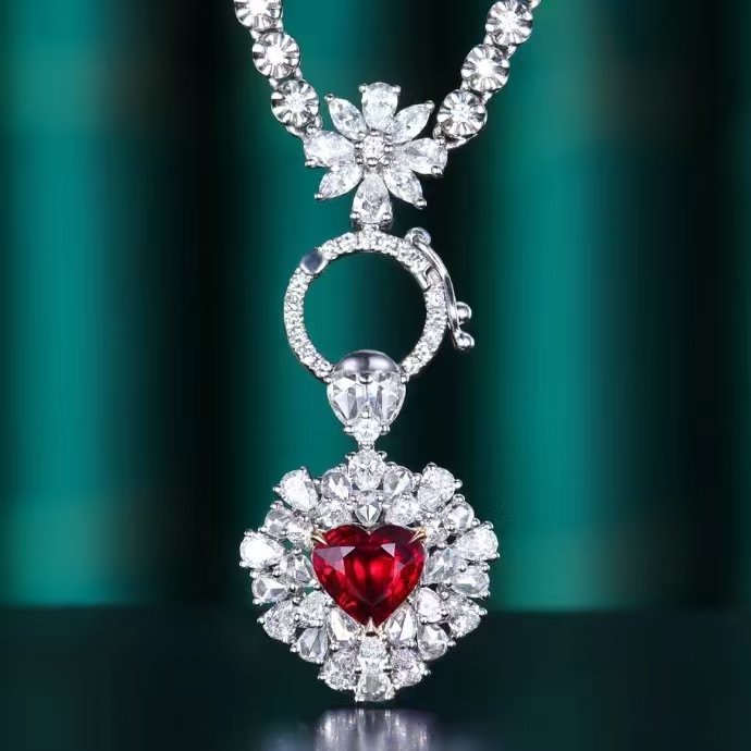 Introducing the MEDBOO Fine Jewelry Factory’s exquisite custom piece: a solid 18k white gold ring or pendant featuring a stunning 1.24-carat heart-cut natural red ruby. This luxurious jewelry exudes elegance and nobility, showcasing the exceptional quality of unheated gemstones. Perfect for special occasions or as a cherished gift, its timeless design and brilliant craftsmanship make it a standout addition to any collection. Elevate your style with this remarkable piece that embodies sophistication and beauty.