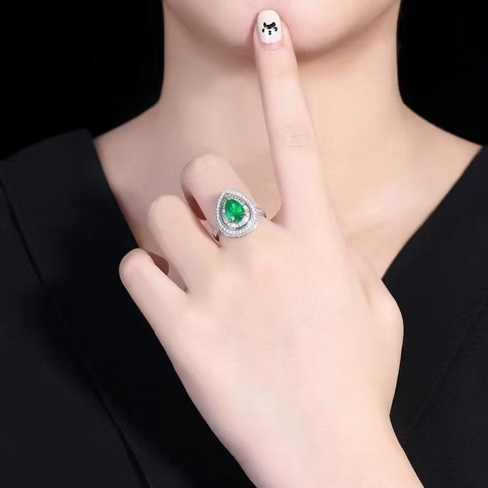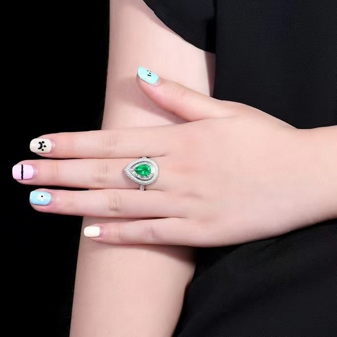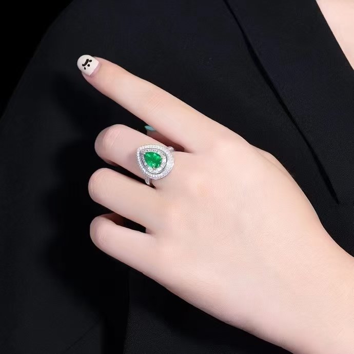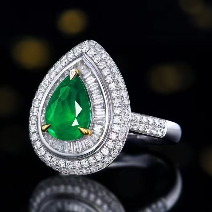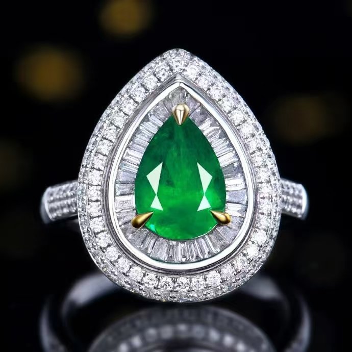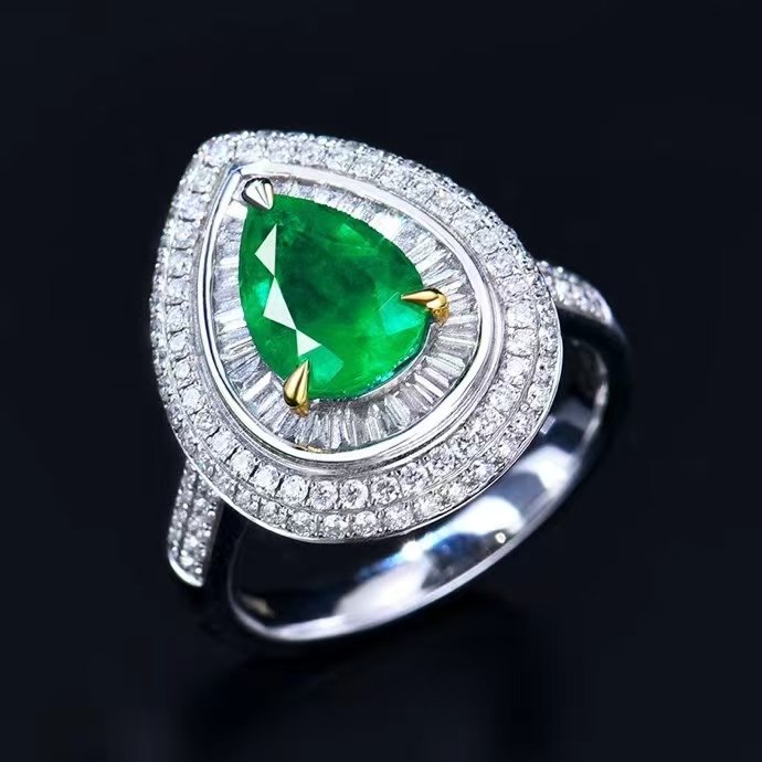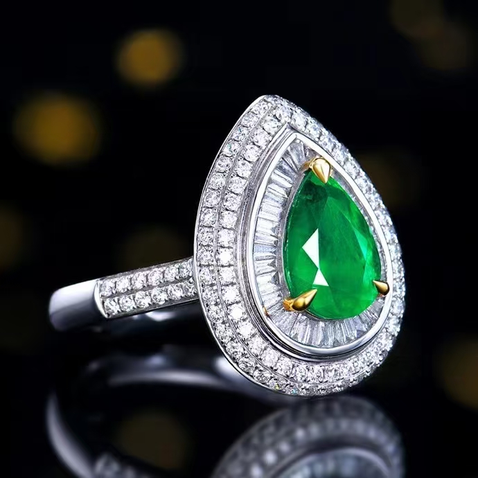 SGARIT Fine Jewelry Factory Customized Solid 18k White Gold 1.5 Carats Pear Cut Jewellery Classic Engagement Anniversary Vivid Green Natural Gemstone Emerald Ring