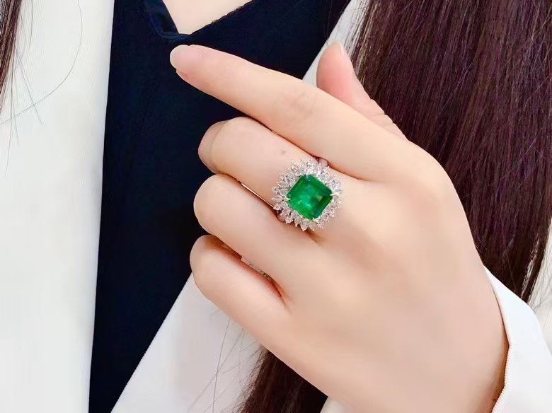 SGARIT Fine Jewelry Factory Customized Solid 18k White Gold 3.4 Carats Carre Cut Jewellery Classic Engagement Anniversary VVG Green Natural Gemstone Emerald Ring