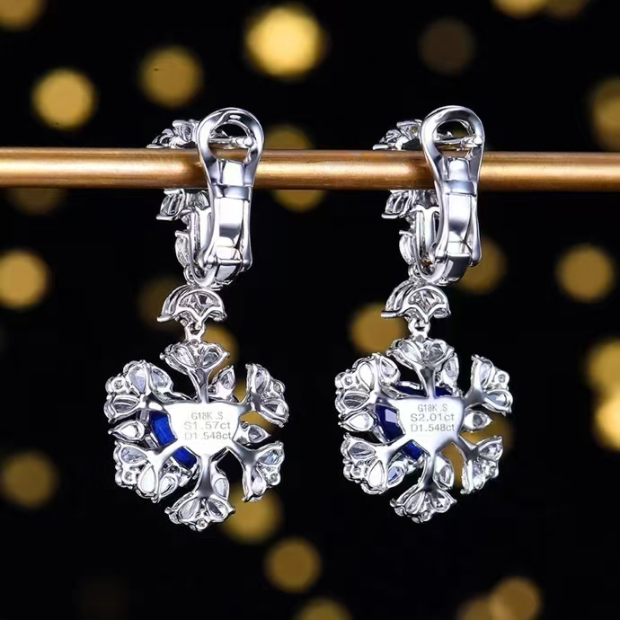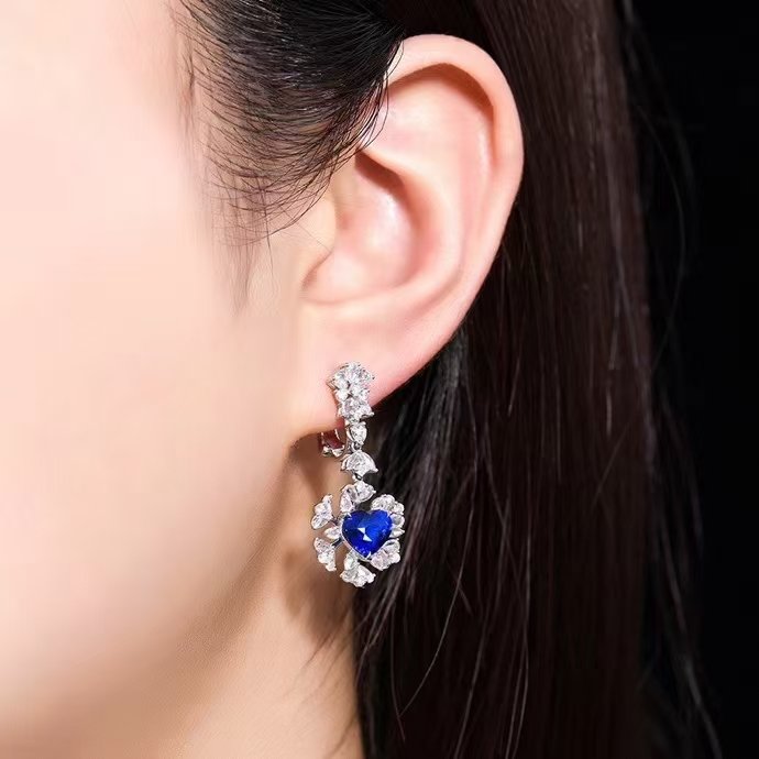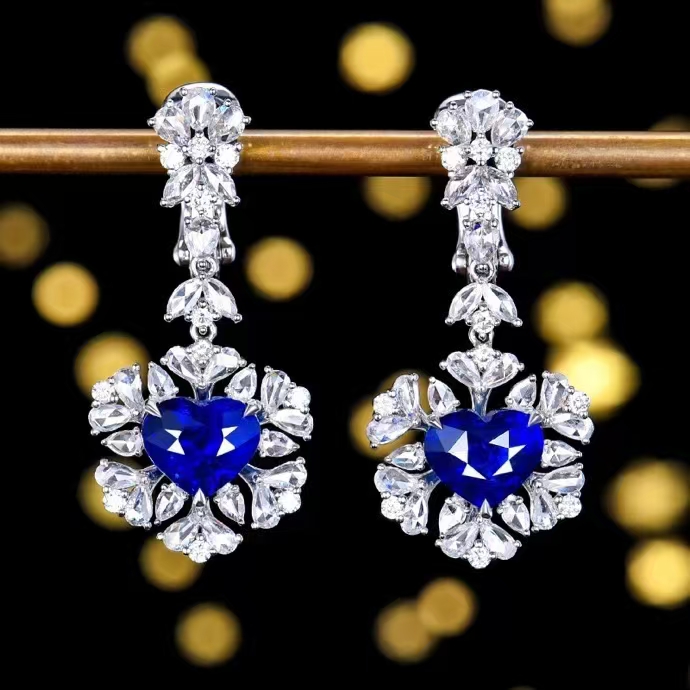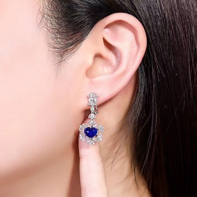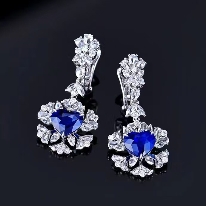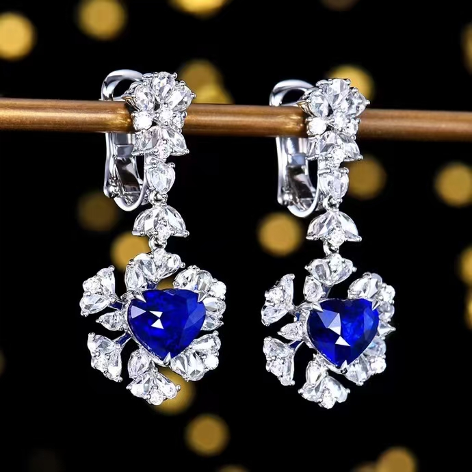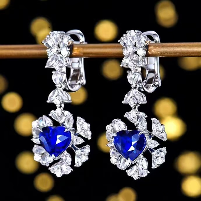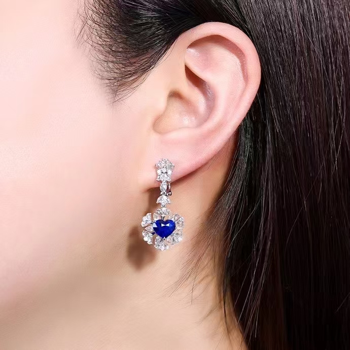 SGARIT Fine Jewelry Manufacturer Custom Real 18k White Gold 3.58 Carats Heart Cut Jewellery Luxury Natural Gemstone Sri Lanka Blue Sapphire Earrings