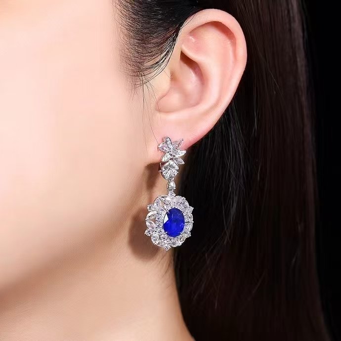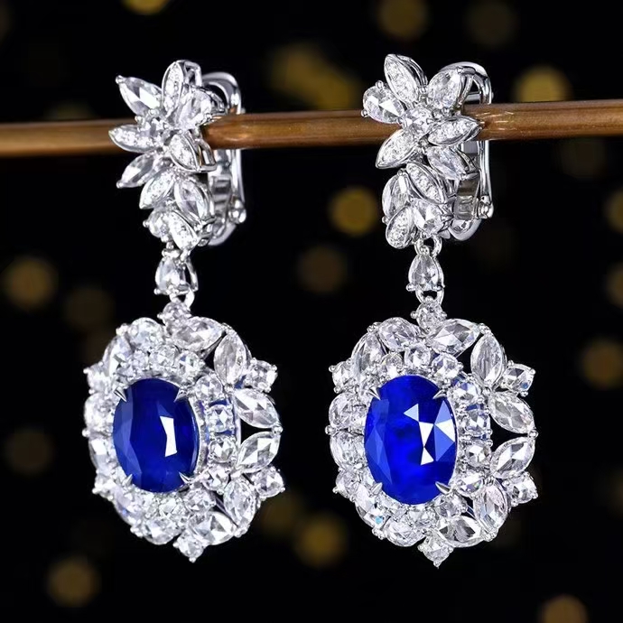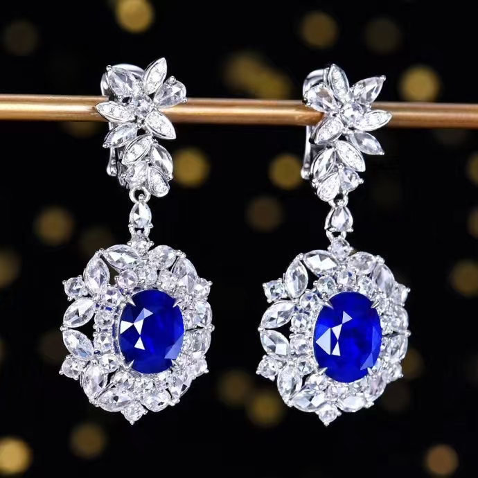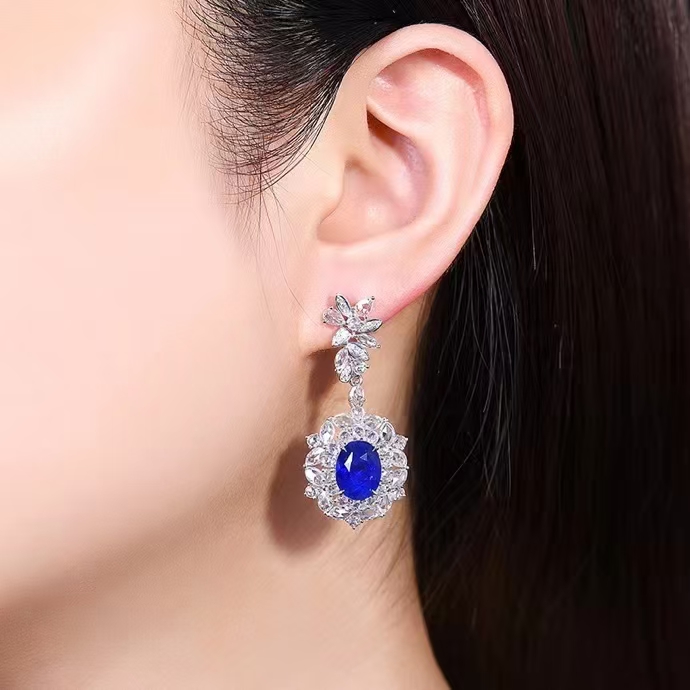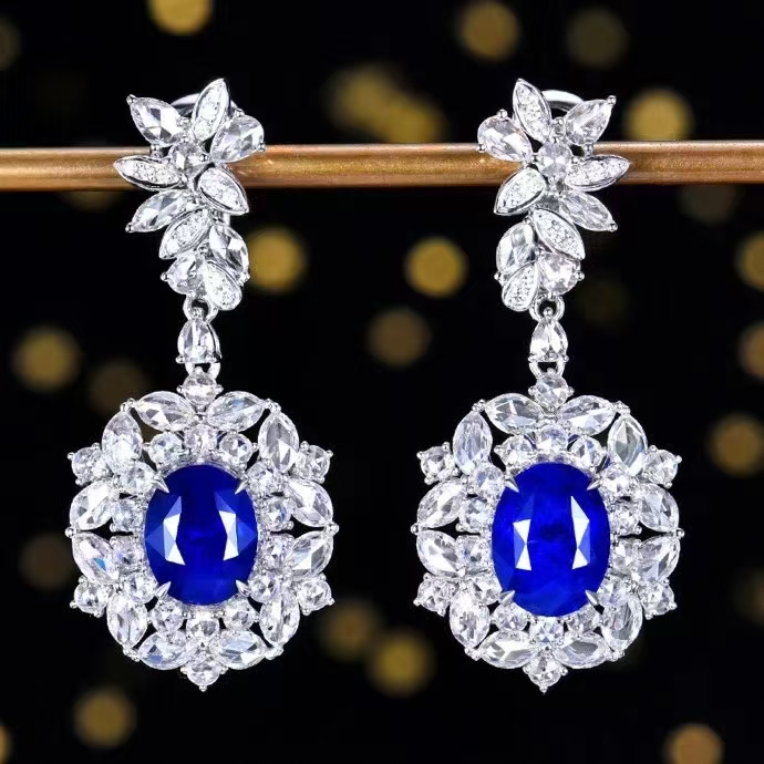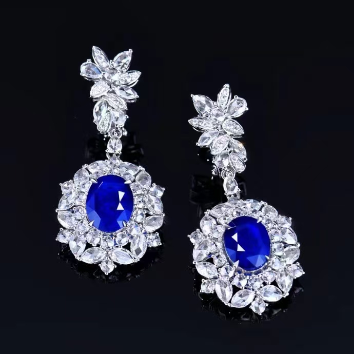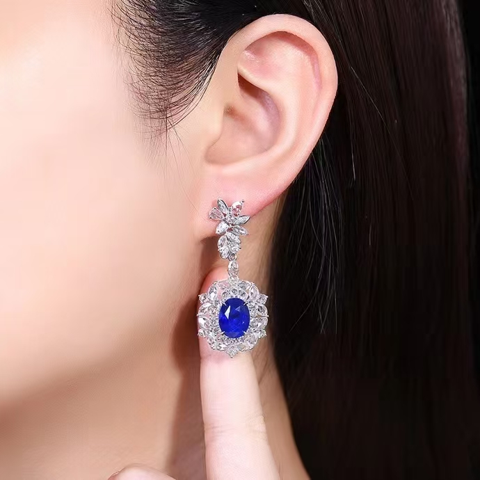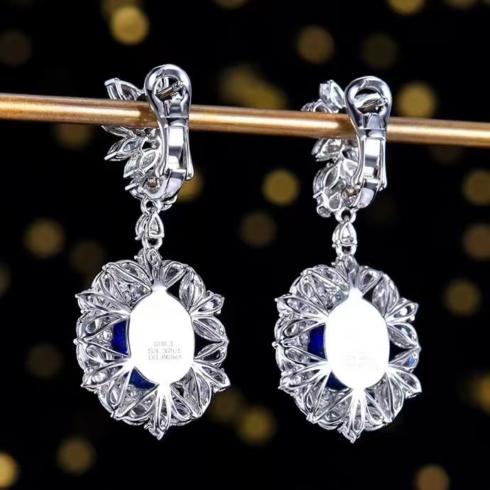 SGARIT Fine Jewelry Manufacturer Custom Real 18k White Gold 3.92 Carats Oval Cut Jewellery Luxury Natural Gemstone Sri Lanka Blue Sapphire Earrings