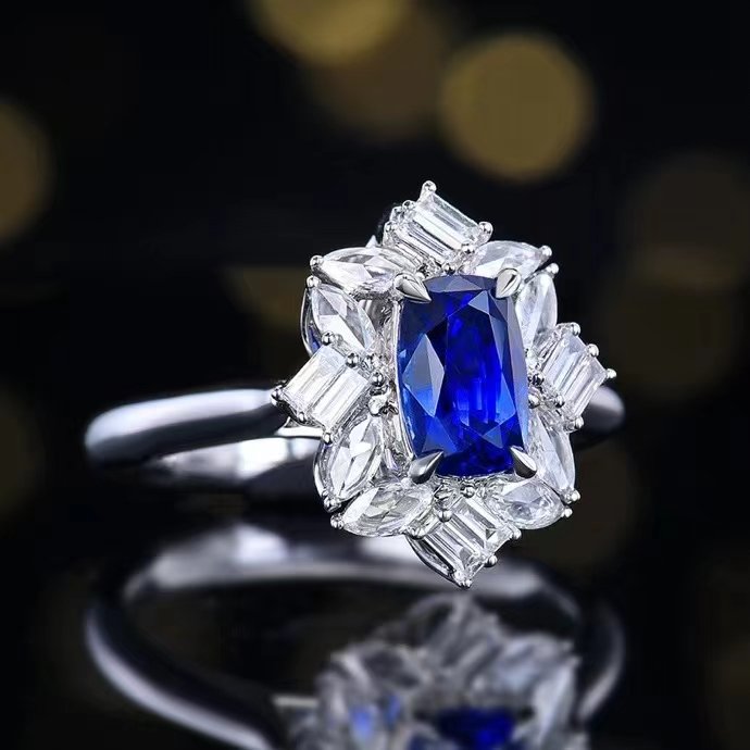 Sgarit Fine Jewelry Wholesaler Real 18k White Gold 1.77 Carats Cushion Cut Jewellery Royal Blue Sapphire Sri Lanka Natural Gemstone Ring