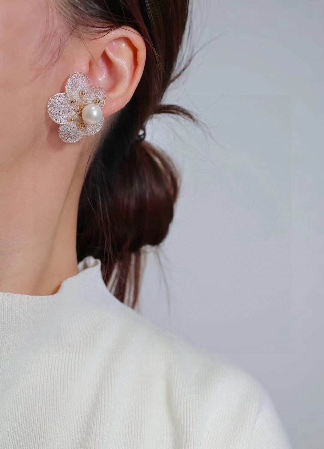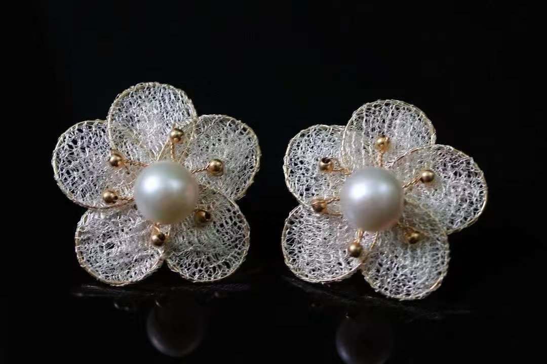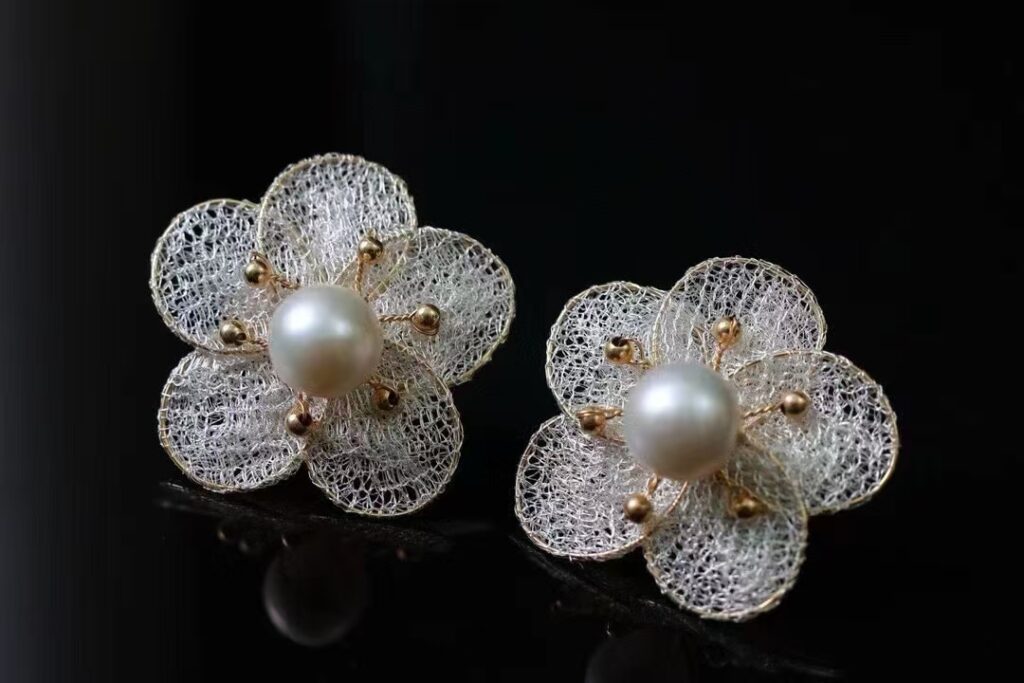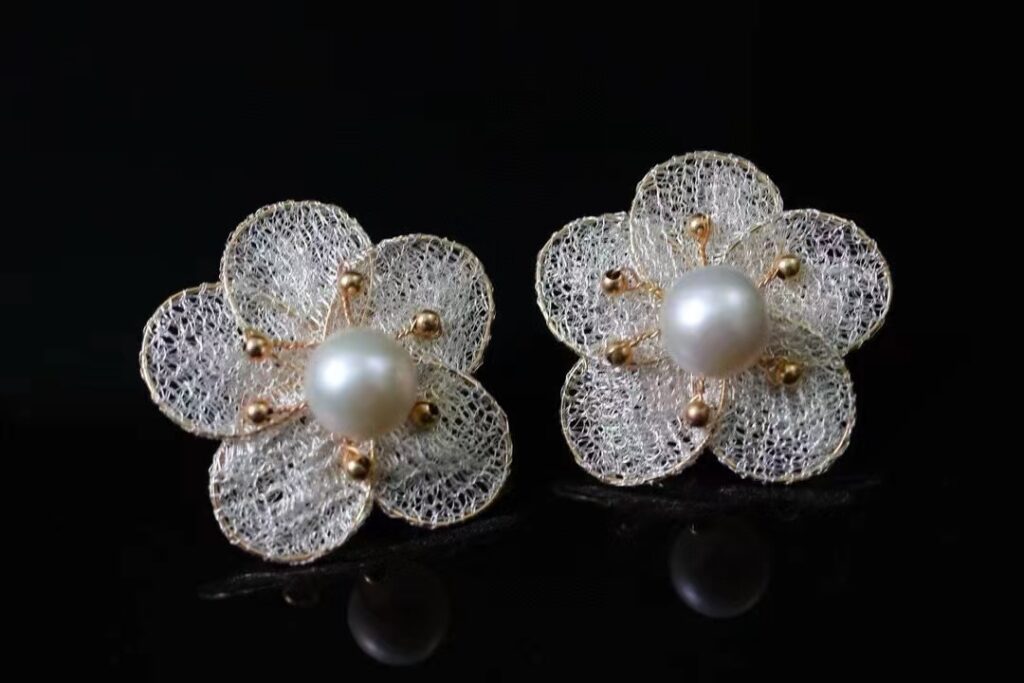 Discover elegance with these original design earrings featuring high-quality, natural freshwater pearls (9-10mm) that shimmer with strong luster. The pearls are beautifully complemented by imported 14k gold and intricately crafted metal lace, creating a timeless piece with a 2.5cm outer diameter. Perfect for those who appreciate fine craftsmanship and luxurious style, these earrings elevate any look, making them an ideal choice for both daily wear and special occasions. Experience the blend of sophistication and high appearance in these stunning pearl earrings.