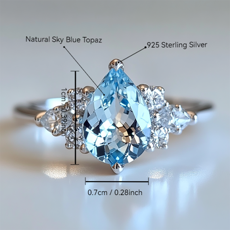 Sgarit Fashion Jewellery 925 Silver Crystal Ring Jewelry Pear Cut Sky Blue Topaz 10X7mm 2ct Natural Gemstone Ring For Women Gift