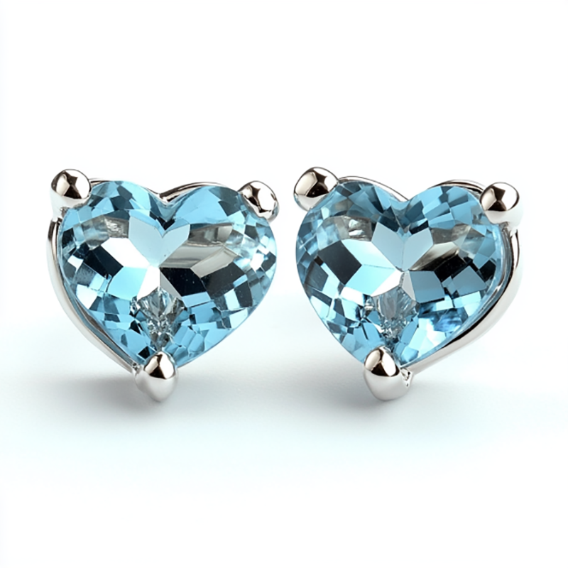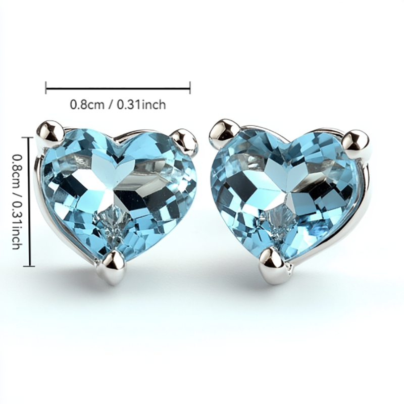 Sgarit Fashion Jewelry 925 Sterling Silver Gemstone Jewellery Heart Cut 8mm Natural Sky Blue Topaz Crystal Stud Earrings