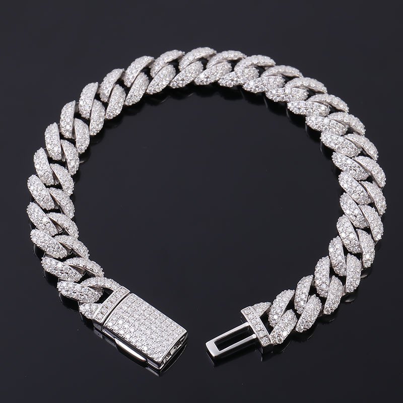 Sgarit Fine Jewelry 18K White Gold Hip Hop Moissanite 10Mm 15Mm Cuban Bracelet