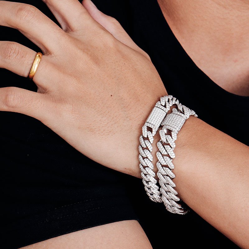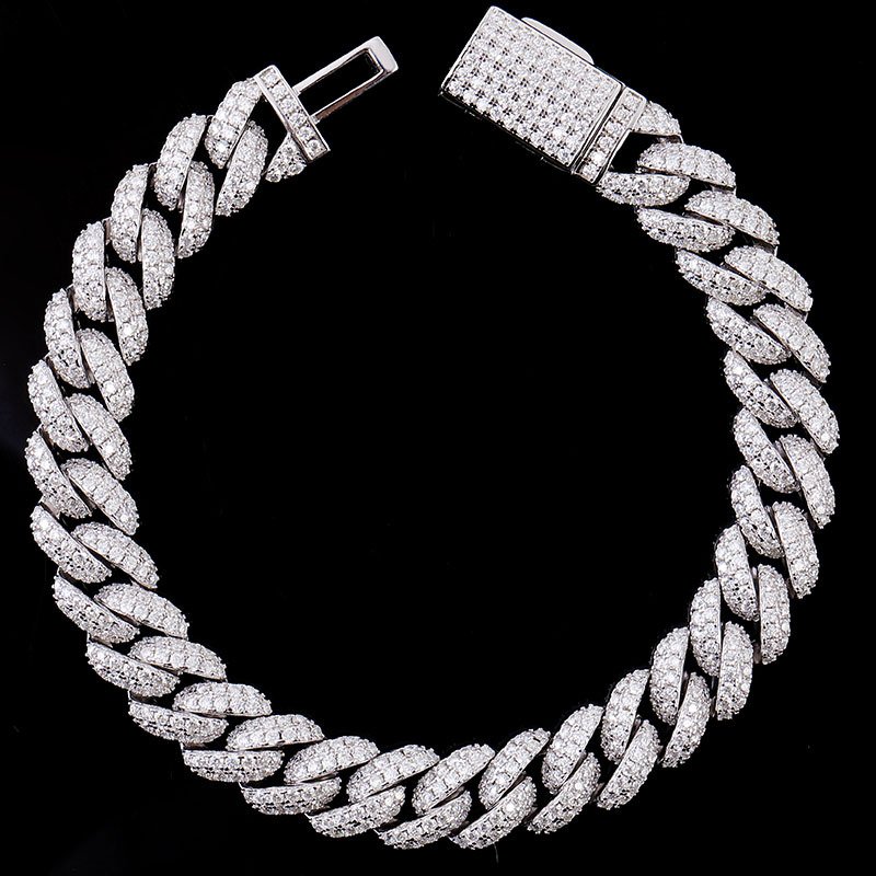 Sgarit Fine Jewelry 18K White Gold Hip Hop Moissanite 10Mm 15Mm Cuban Bracelet