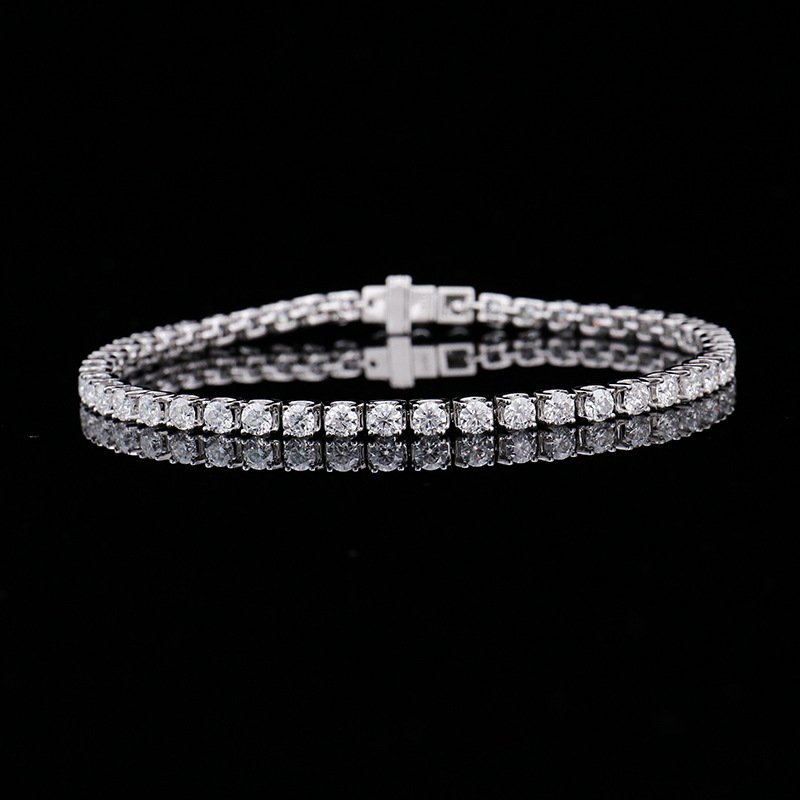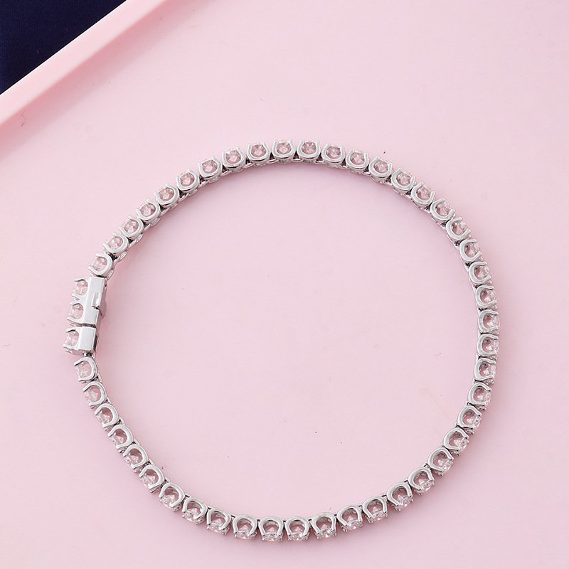 This stunning bracelet combines the brilliance of moissanite with the timeless elegance of 925 sterling silver. Expertly crafted, each moissanite stone sparkles with diamond-like clarity, offering unmatched brilliance and durability. The bracelet’s sleek and modern design ensures it complements any outfit, from casual to formal. Hypoallergenic and tarnish-resistant, this piece is perfect for daily wear or as a special gift. Elevate your jewelry collection with this exquisite and affordable luxury.