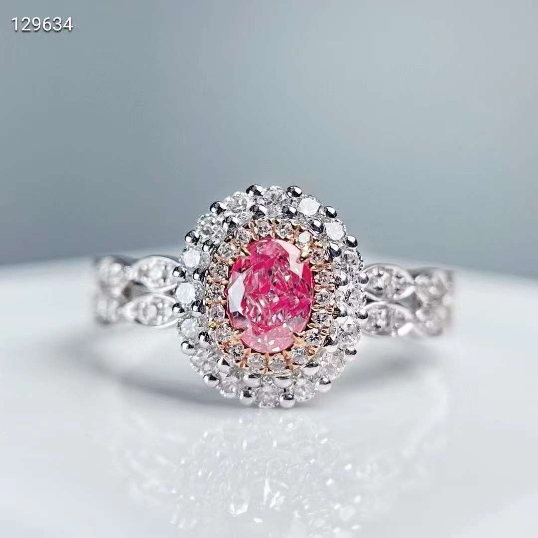 SGARIT Fine Jewelry Producer Custom Solid 18k White Gold 0.31 Carats Oval Cut Jewellery Luxury Fancy Pink Natural Diamond SI Ring