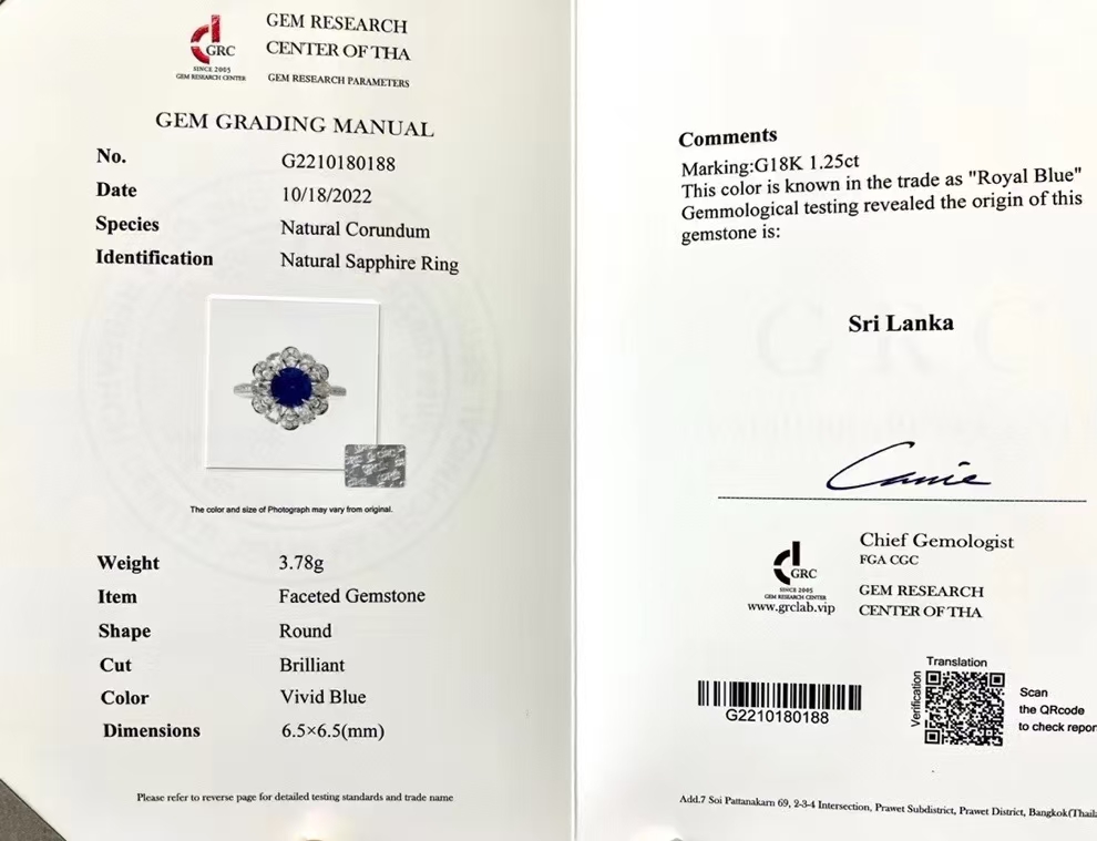 | Jewelry Name | 18K Gold Natural Sri Lanka Cornflower Blue Sapphire Gemstone Ring |