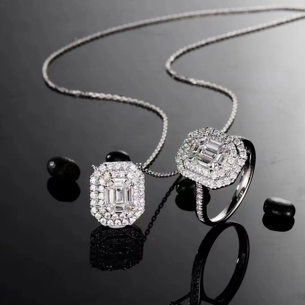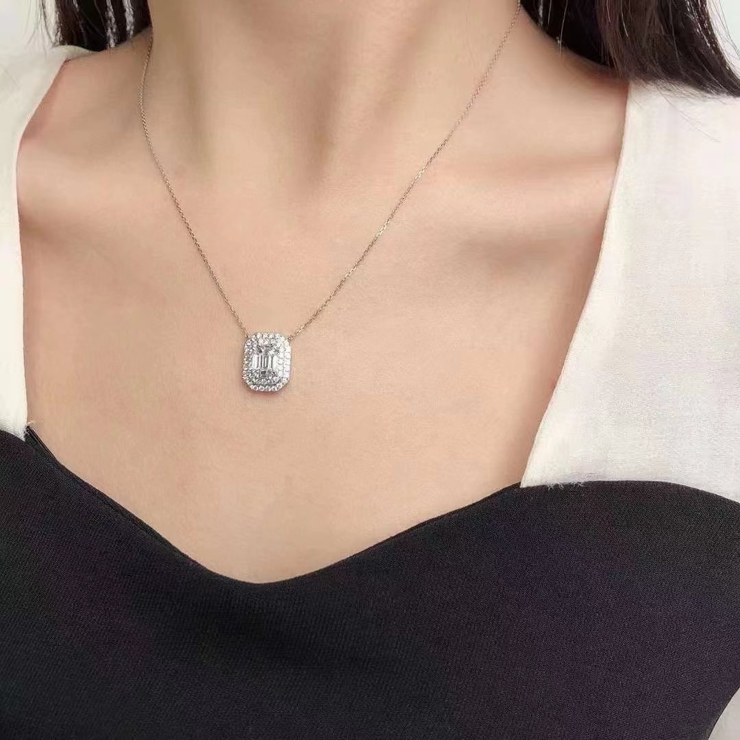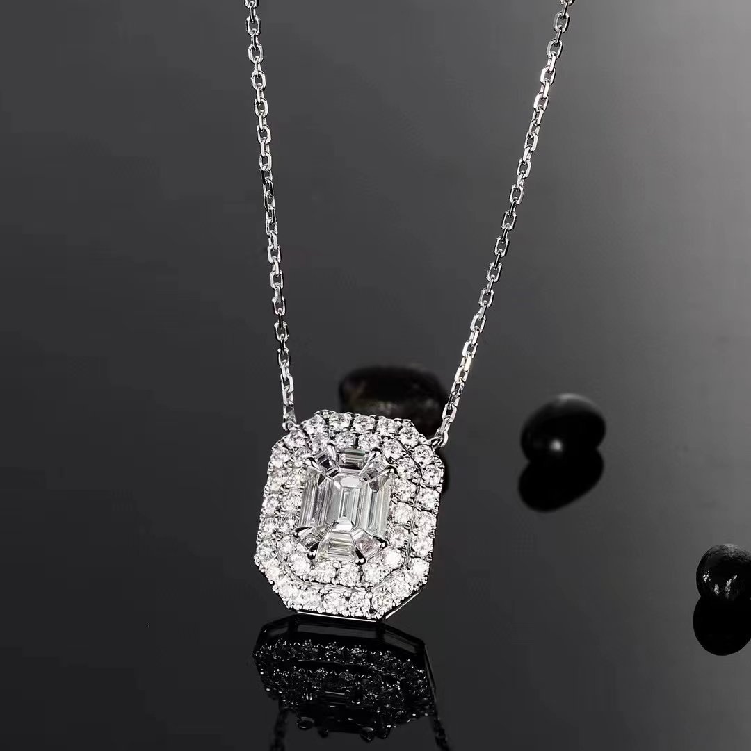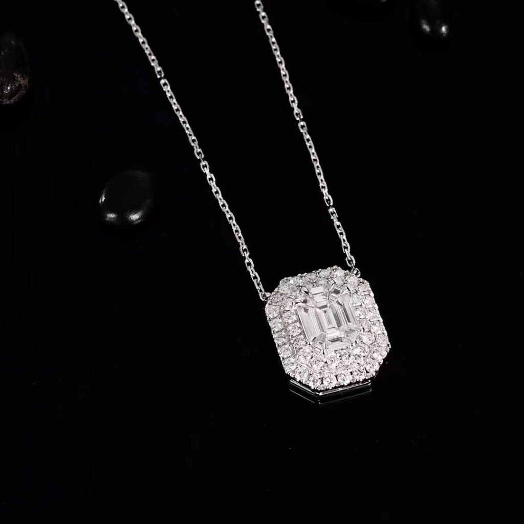 SGARIT Fine Jewelry Factory Real 18k White Gold 0.820 Carats Emerald Cut Jewellery Romantic Natural Diamond Double Pendant