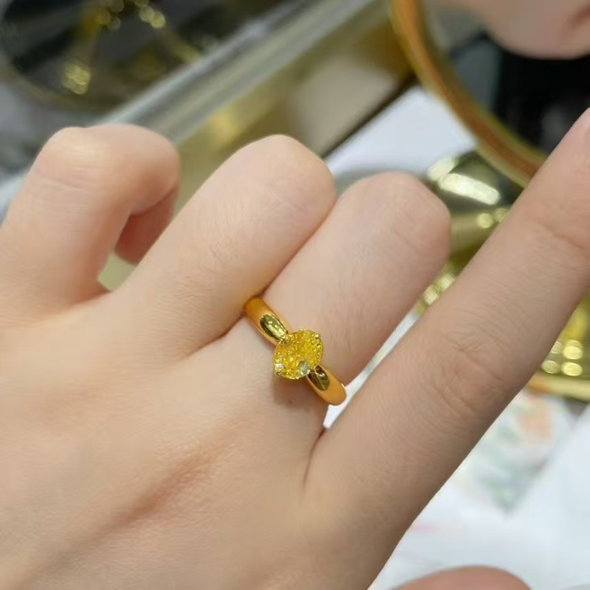 Sgarit Fine Jewelry Manufacturer 18K Gold Oval Cut Vs 1.01Ct Natural Fancy Yellow Diamond Ring Jewellery