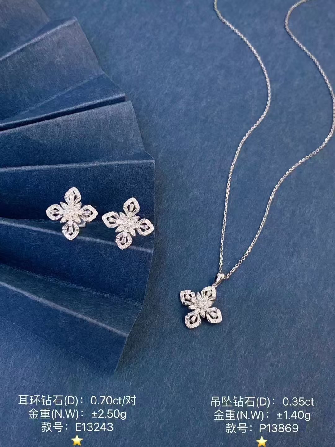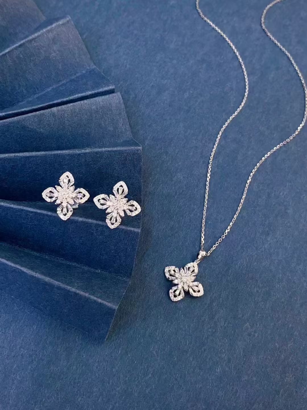 Introducing the SGARIT Fine Jewelry Manufacturer Solid 18k Gold 0.1CT Natural Diamond Four Leaf Clover Jewelry Set. This exquisite set features a stunning four-leaf clover design, symbolizing luck and prosperity. Crafted from premium 18k gold, each piece is adorned with 0.1CT of brilliant natural diamonds, adding a touch of elegance and sparkle. Perfect for any occasion, this jewelry set combines timeless beauty with exceptional craftsmanship, making it an ideal gift for loved ones or a cherished addition to your own collection. Embrace good fortune and style with this enchanting jewelry set.