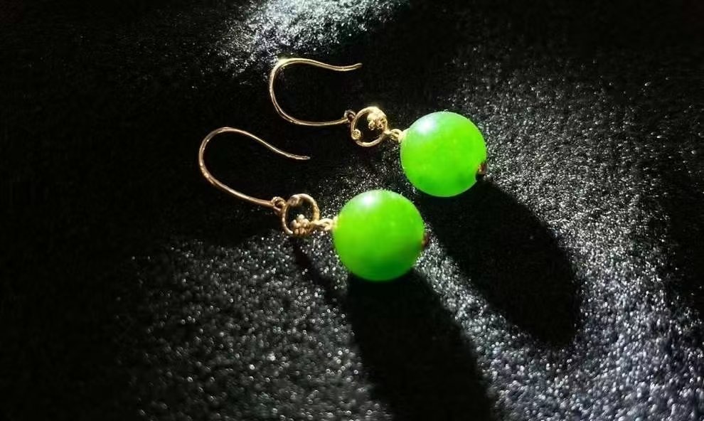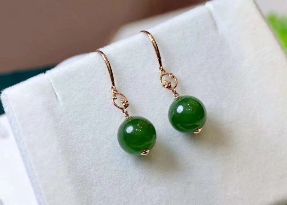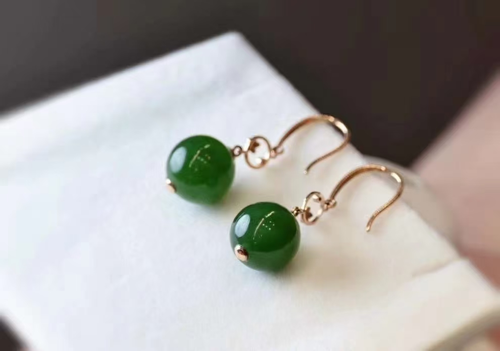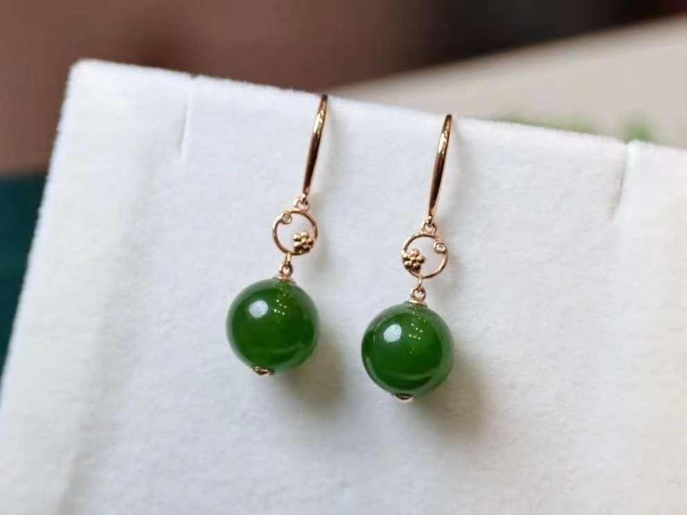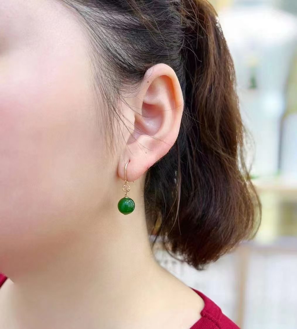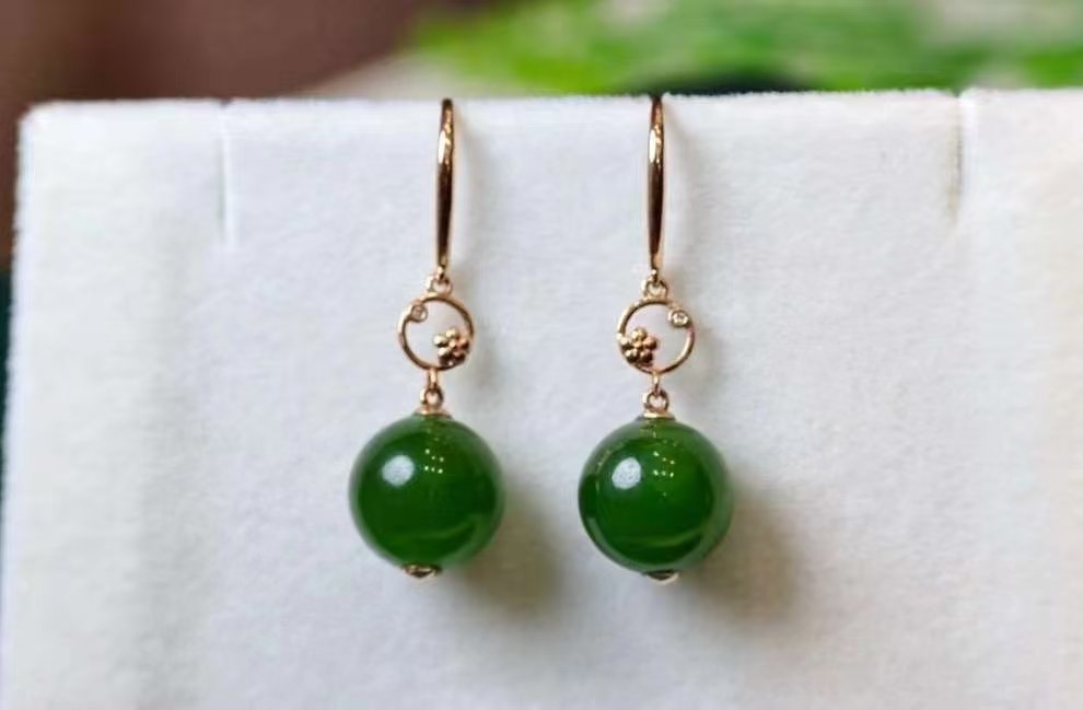 Jewelry Name 18K Gold Natural Nephrite Hetian Jasper Jade Bead Earrings