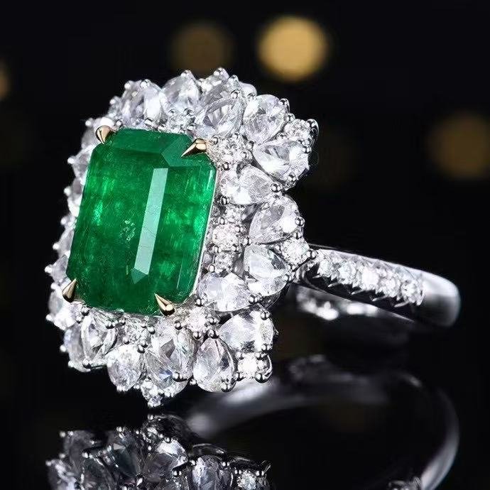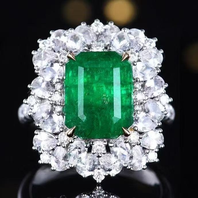 SGARIT OEM Design Custom Fine Jewelry GUILD 18k Gold 6.05ct Emerald Cut Natural Emerald Ring with Diamonds Jewellery for Women