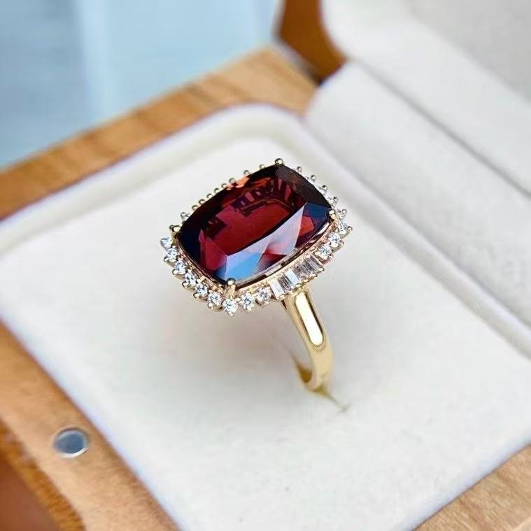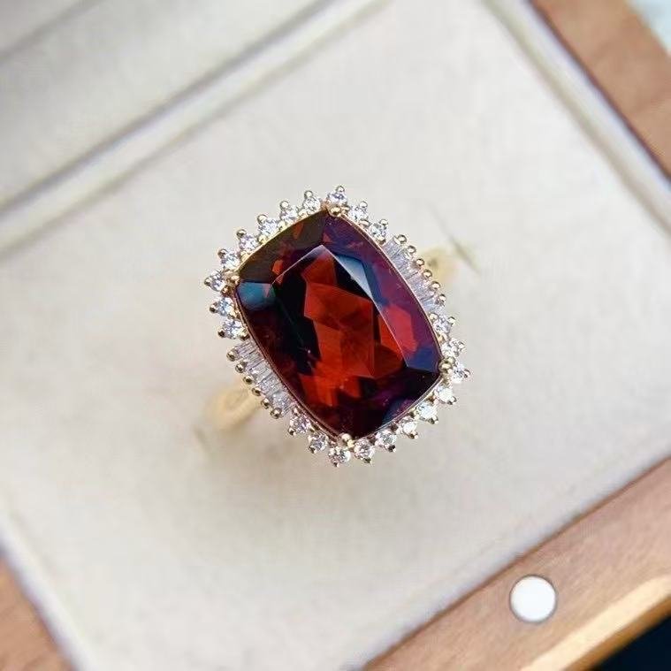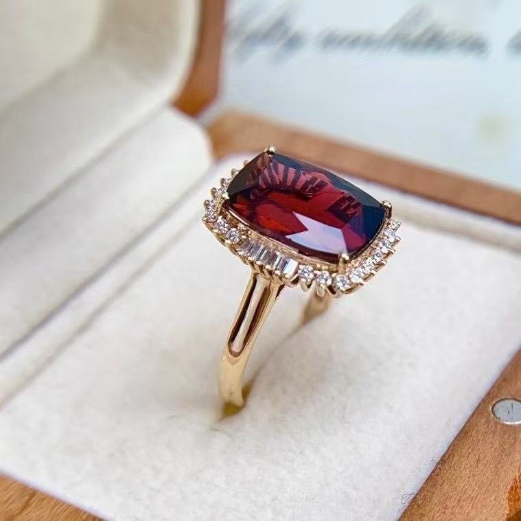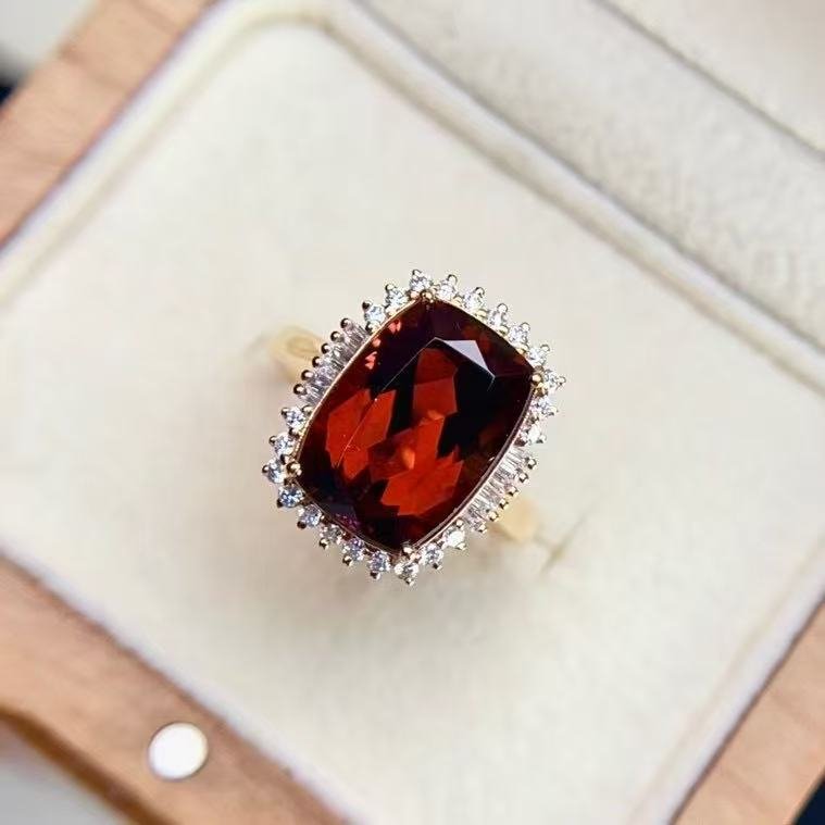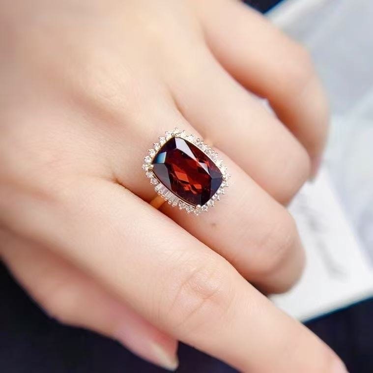 SGRAIT Luxury 18k Gold Diamond Jewellery 5.55ct Cushion Cut Garnet with 32p 0.92ct Diamonds Jewelry Ring