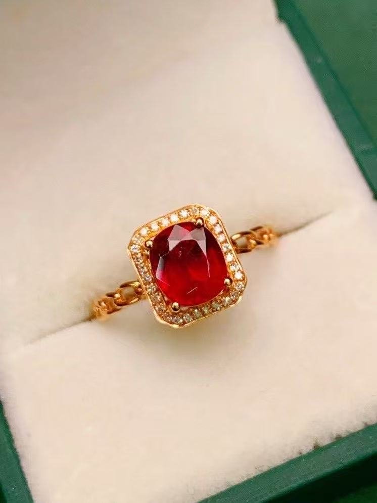 SGRAIT Luxury 18k Gold Diamond Jewellery Oval Cut 1.45ct Garnet Ring with 31p 0.093ct Diamonds Jewelry for Women
