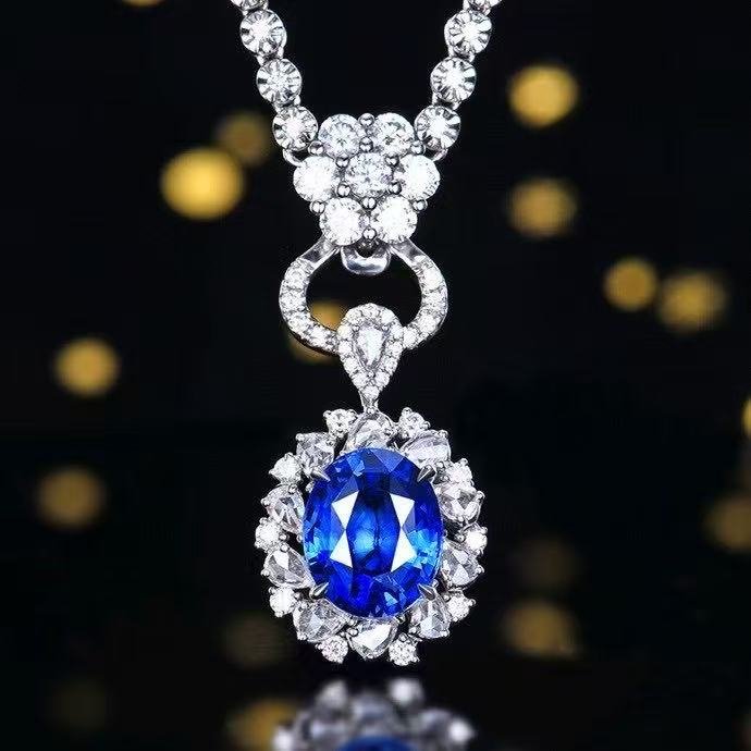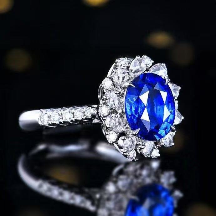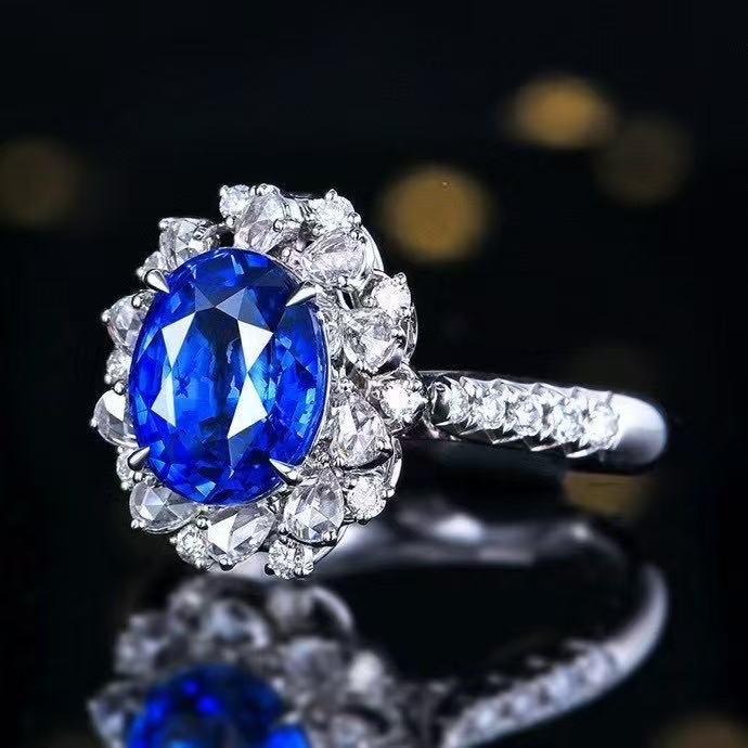 SGRAIT PT950 Luxury 18k Gold Diamond Jewellery 3.63ct Oval Cut Natural Sri Lanka Sapphire With Diamonds Jewelry Ring