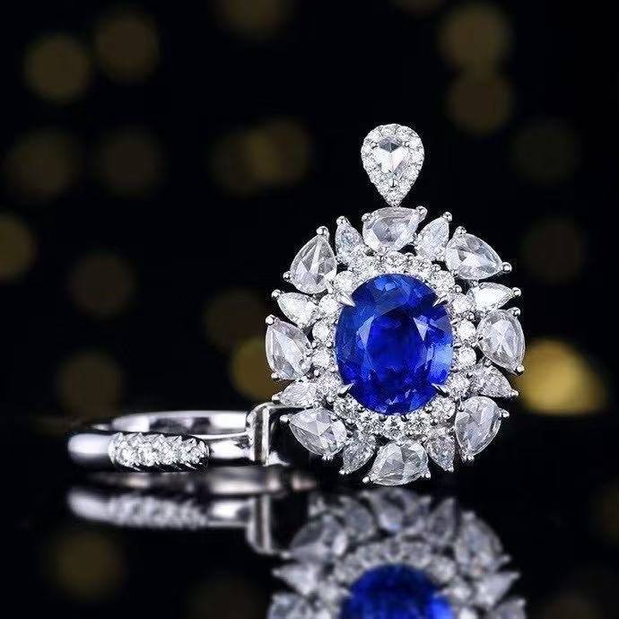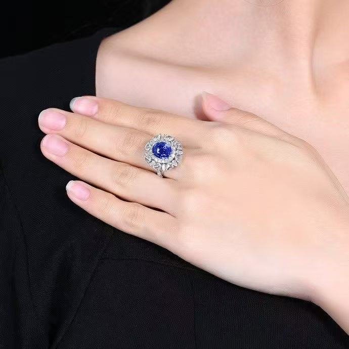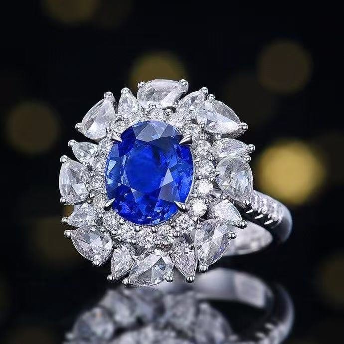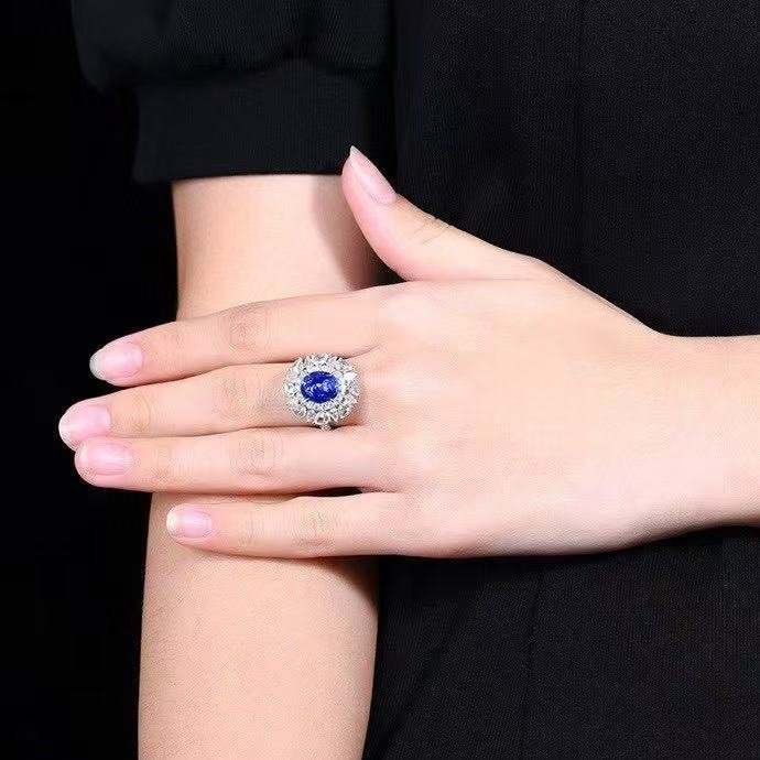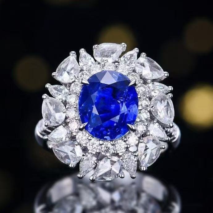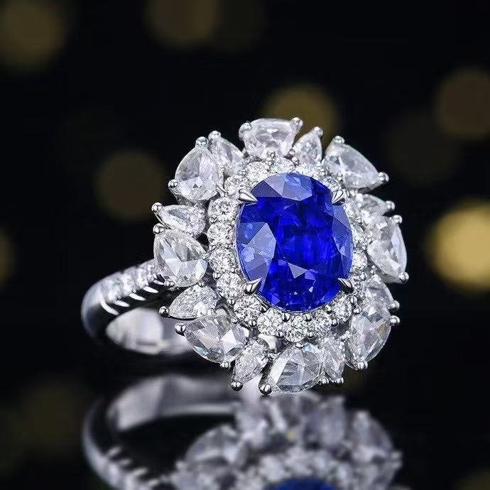 SGRAIT PT950 Luxury 18k Gold Diamond Jewellery 4.08ct Oval Cut Unheated Natural Cornflower Sapphire Diamonds Jewelry Ring