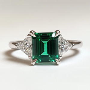 Sgarit Fine Jewelry 925 Sterling Silver Lab Gemstone Ring Emerald Cut 9X7mm Lab Grown Tsavorite Gemstone Ring for Women