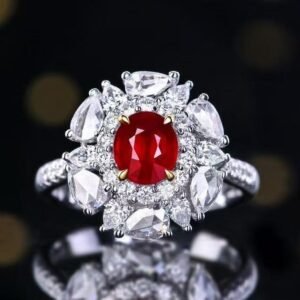 SGRAIT Luxury 18k Gold Diamond Jewellery Ring Oval Cut 1.06ct Unheated Natural Pigeon Blood Red Ruby Ring with Diamonds Jewelry