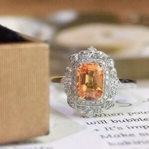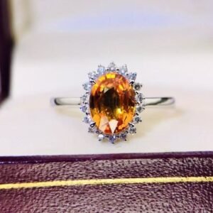 SGRAIT Luxury 18k While Gold Jewellery 1.6ct Oval Cut Orange Sapphire With 0.18ct Diamonds Jewelry Ring for Women No reviews yet