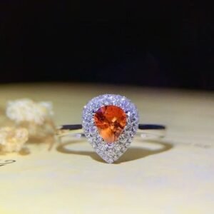 SGRAIT Luxury 18k While Gold Jewellery 0.7ct Pear Cut Orange Sapphire With 0.243ct Diamonds Jewelry Ring for Women